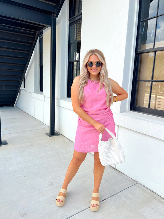 Poppy Pink Ruched Dress