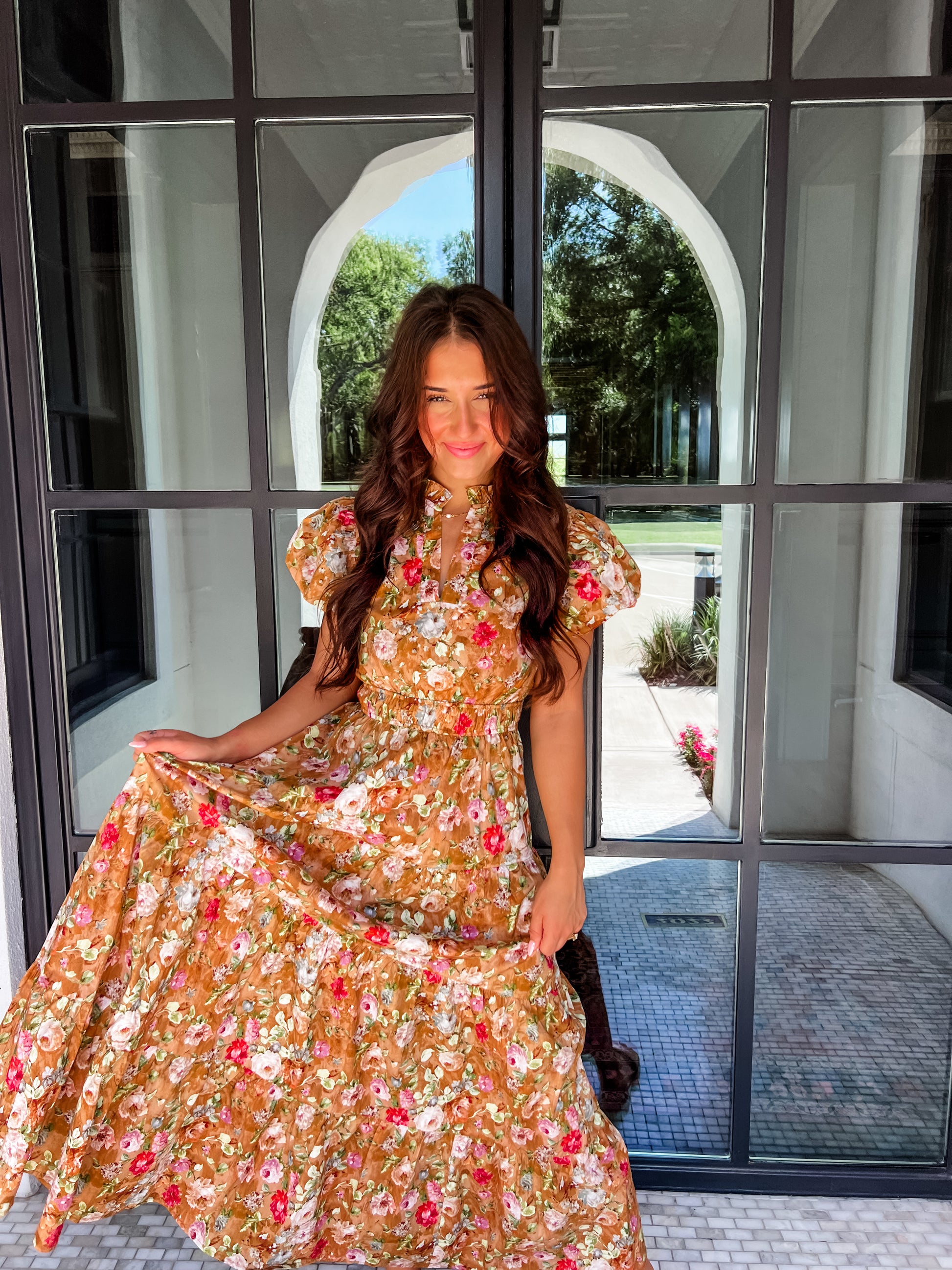 Step into the season with the Autumn Blooms Maxi, a playful maxi dress that celebrates fall’s charm. Its stunning muted floral design captures the essence of autumn, making it the perfect transition piece for cooler days. Flowing and comfortable, this dress lets you embrace the changing leaves in style and ease.