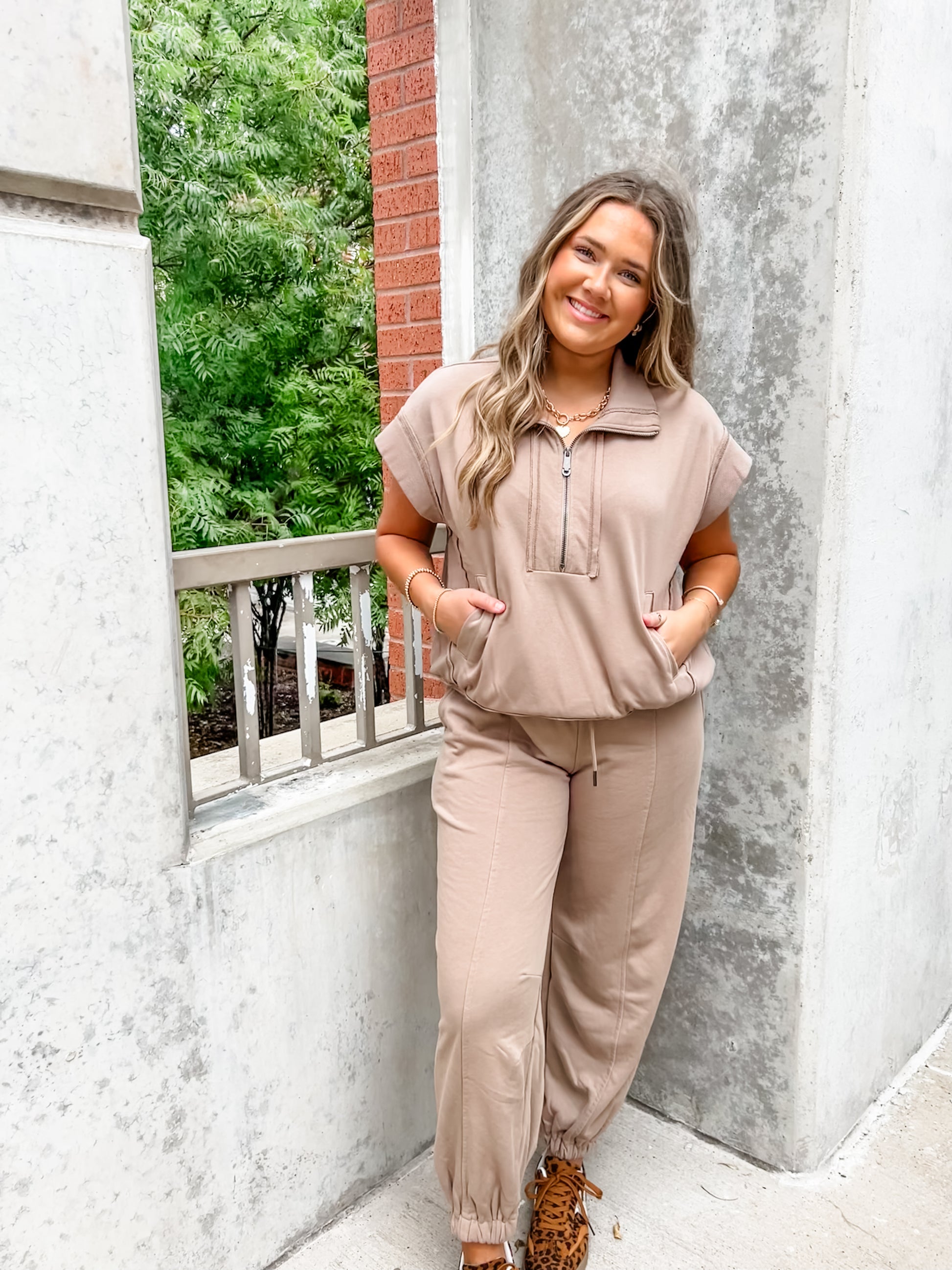The Cabin Time Sweatpants are the perfect blend of comfort and style. Made with soft taupe fabric, these sweatpants are not only cozy, but also cute. Pair them with the matching pullover for a complete, cozy look. Ideal for relaxing at home or running errands, these sweatpants are a must-have for your wardrobe.