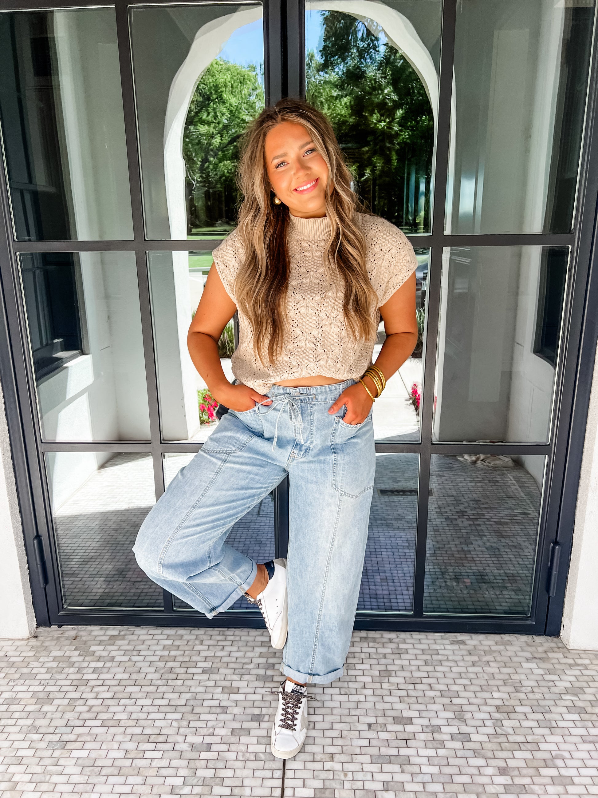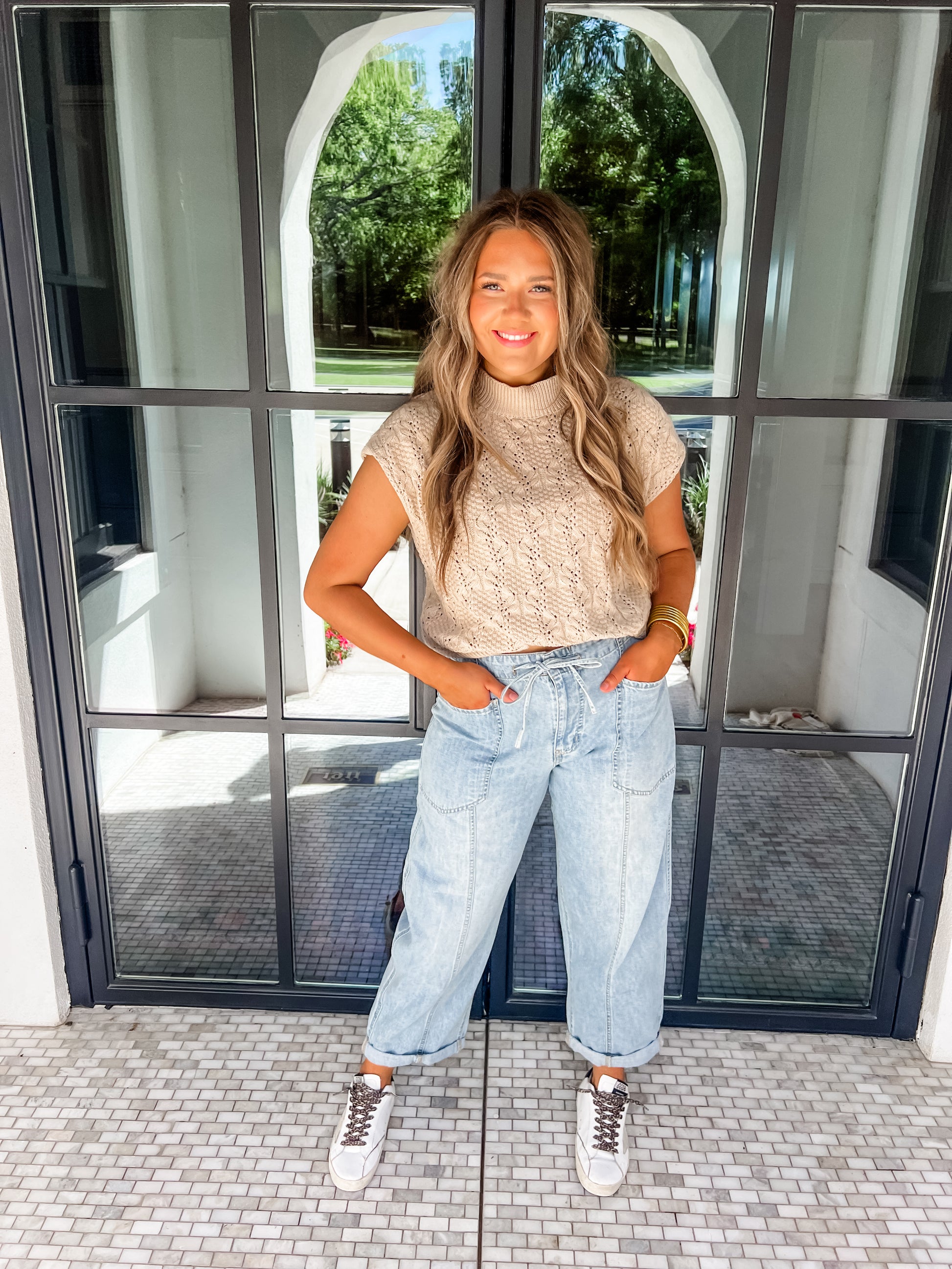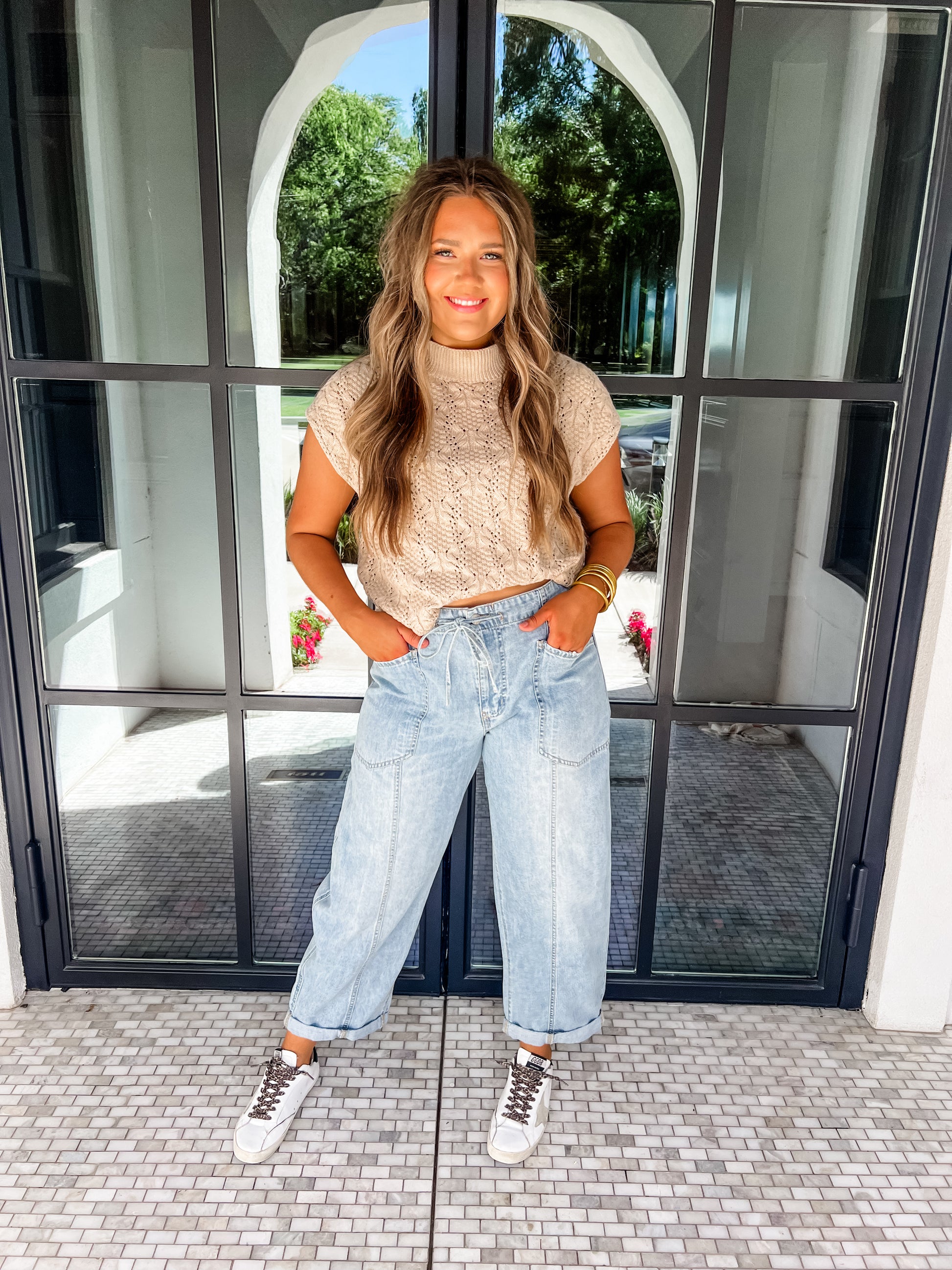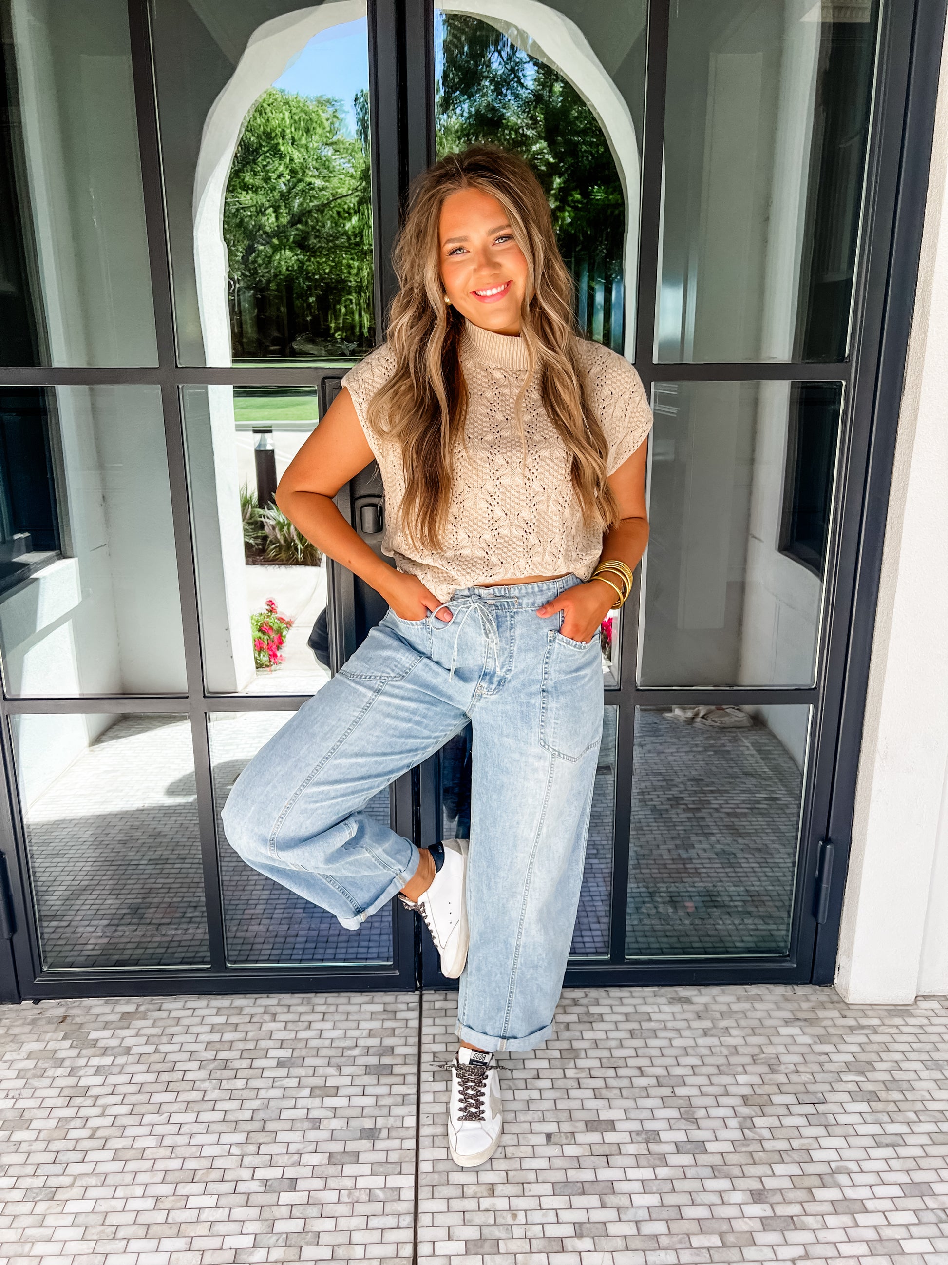 Wrap yourself in cozy charm with the Camry Knit Sweater in Oatmeal. Featuring a classic cable knit and a snug mock neck, this sweater offers a comfy, relaxed fit perfect for chilly days. Its thick material keeps you warm while adding a touch of timeless style to your wardrobe. Whether you're lounging or out and about, the Camry Knit Sweater is your go-to for effortless comfort with a playful twist.