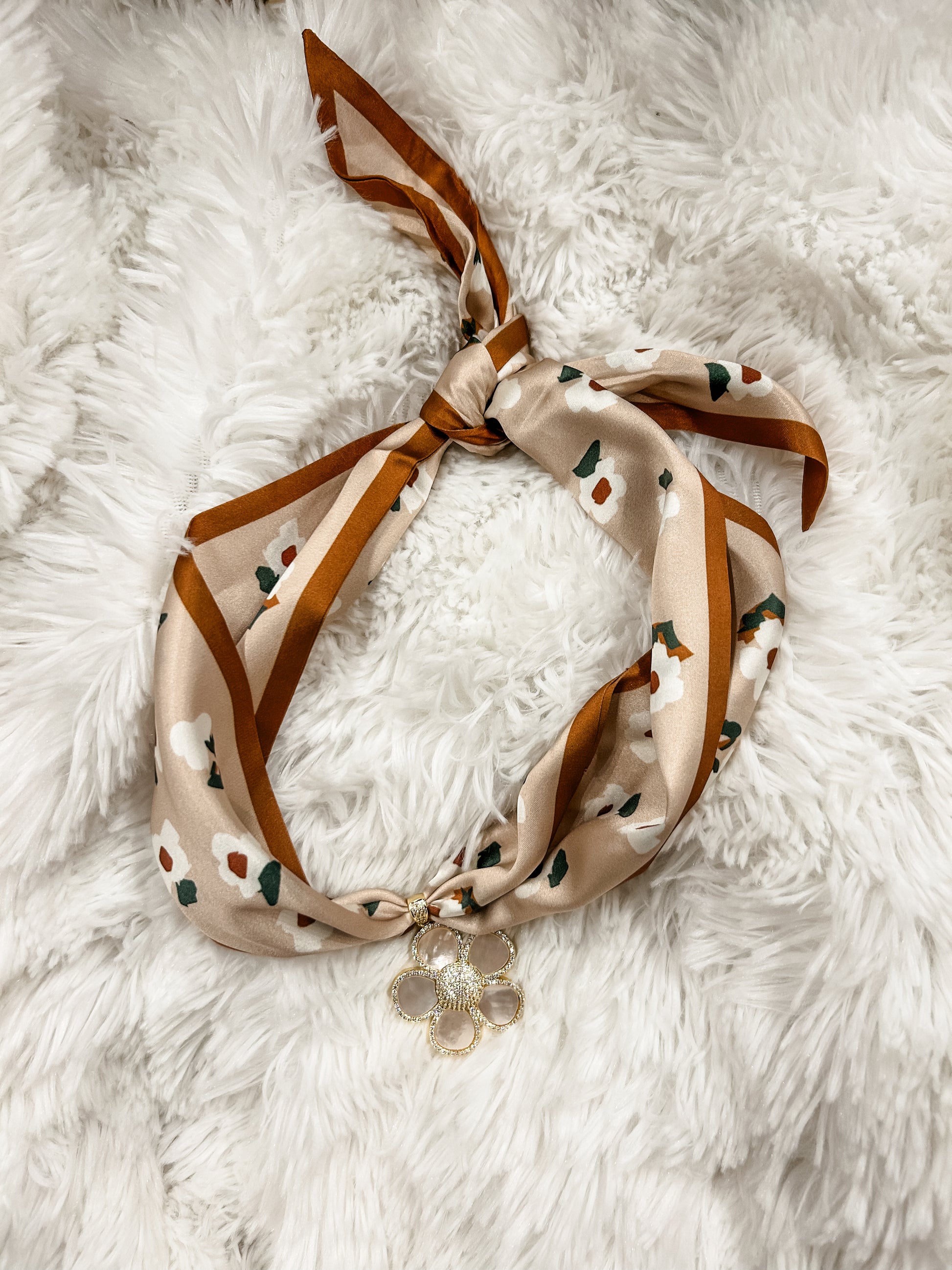 Daisy Charm Scarf Necklace- Brown