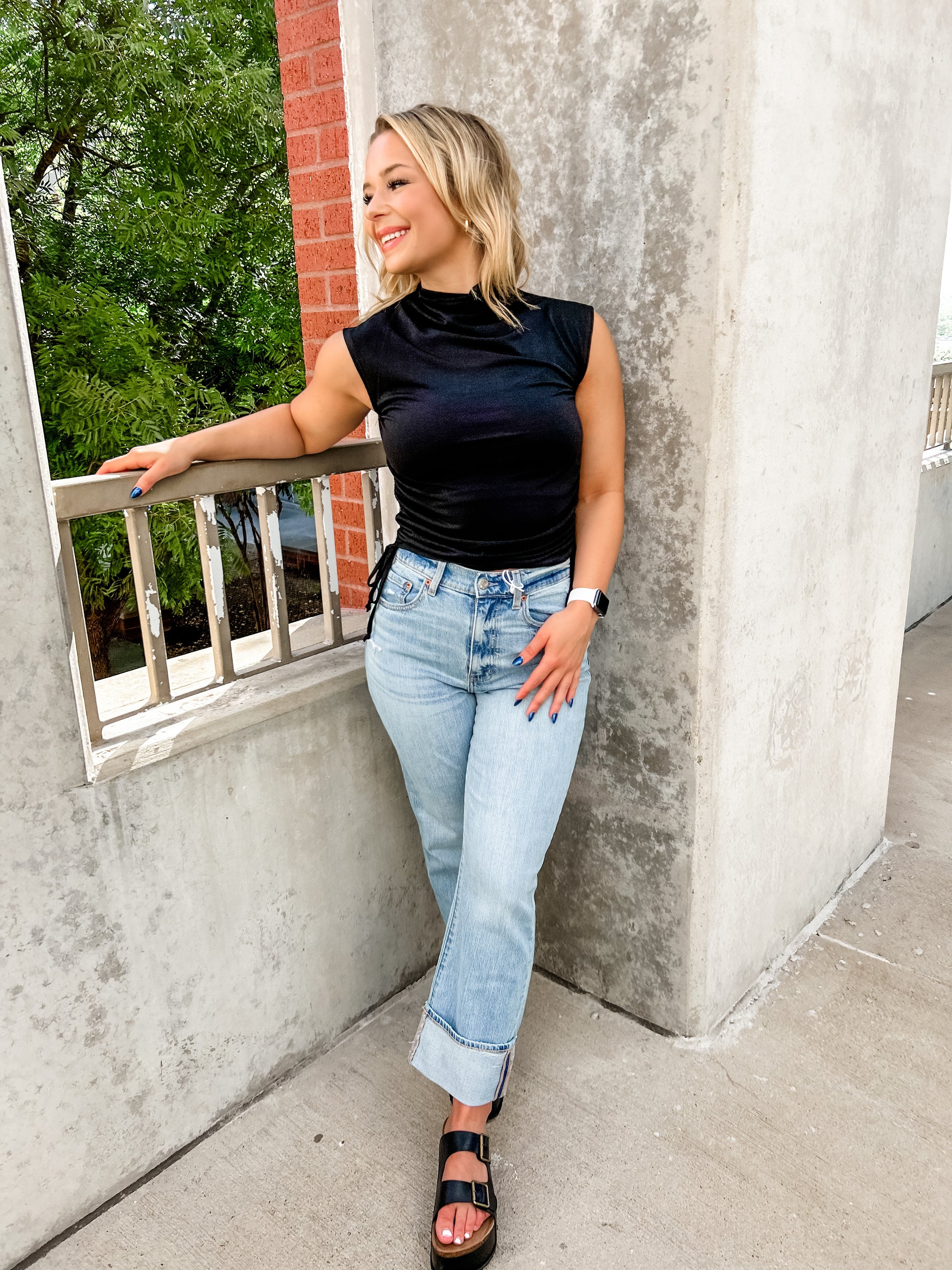Effortlessly elevate your style with Daze// Fate Sundaze Straight Leg jeans. Crafted with a vintage cuff and high rise, these straight leg jeans offer a timeless and flattering silhouette. Perfect for any occasion.