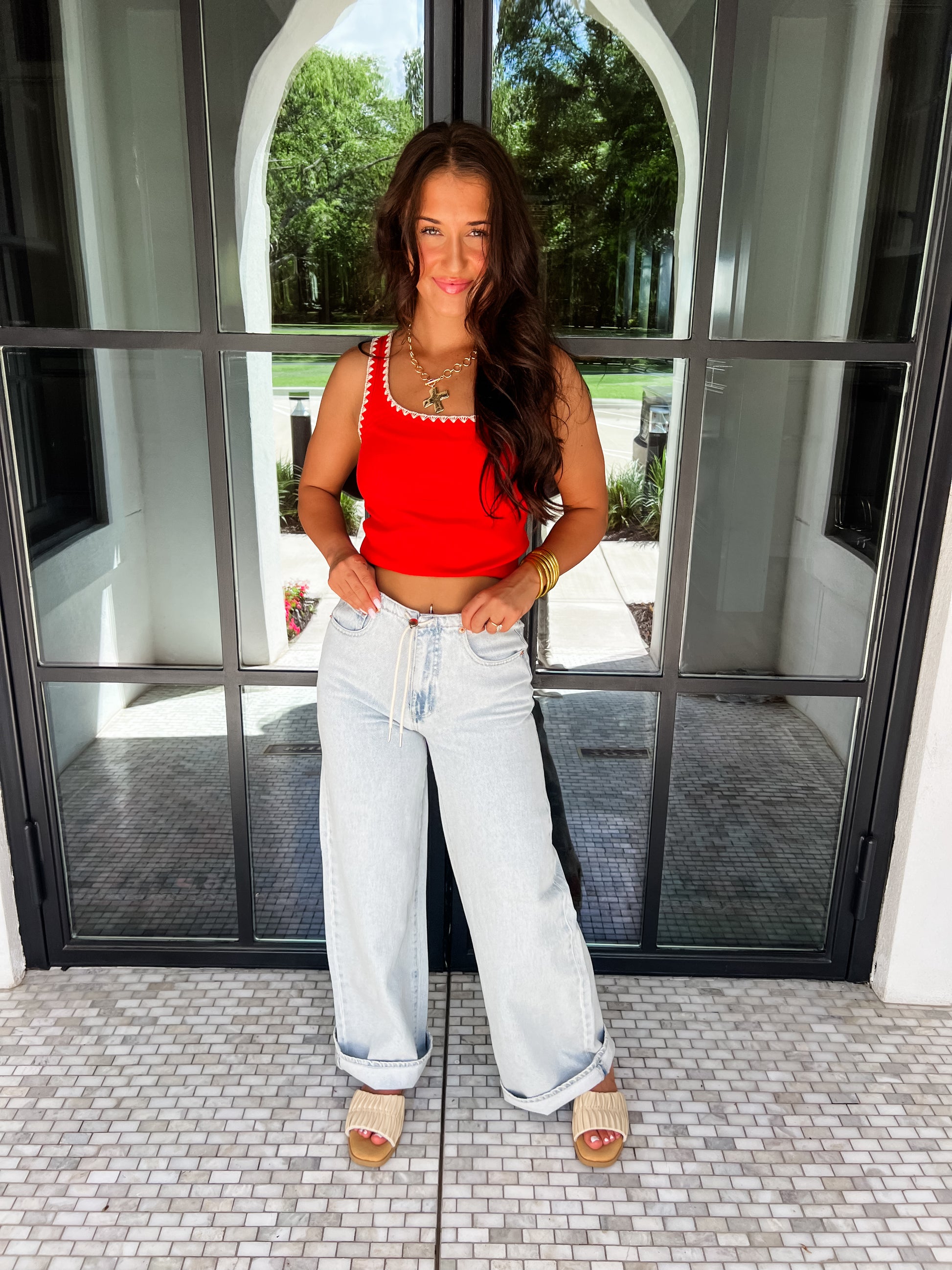 Elevate your denim collection with our Light Wash Daze Drawstring Wide Leg Jeans. These trendy bottoms combine comfort and style with their relaxed silhouette and convenient drawstring waist. Perfect for casual outings or dressed up with your favorite tops, these versatile jeans will quickly become your go-to fashion statement.