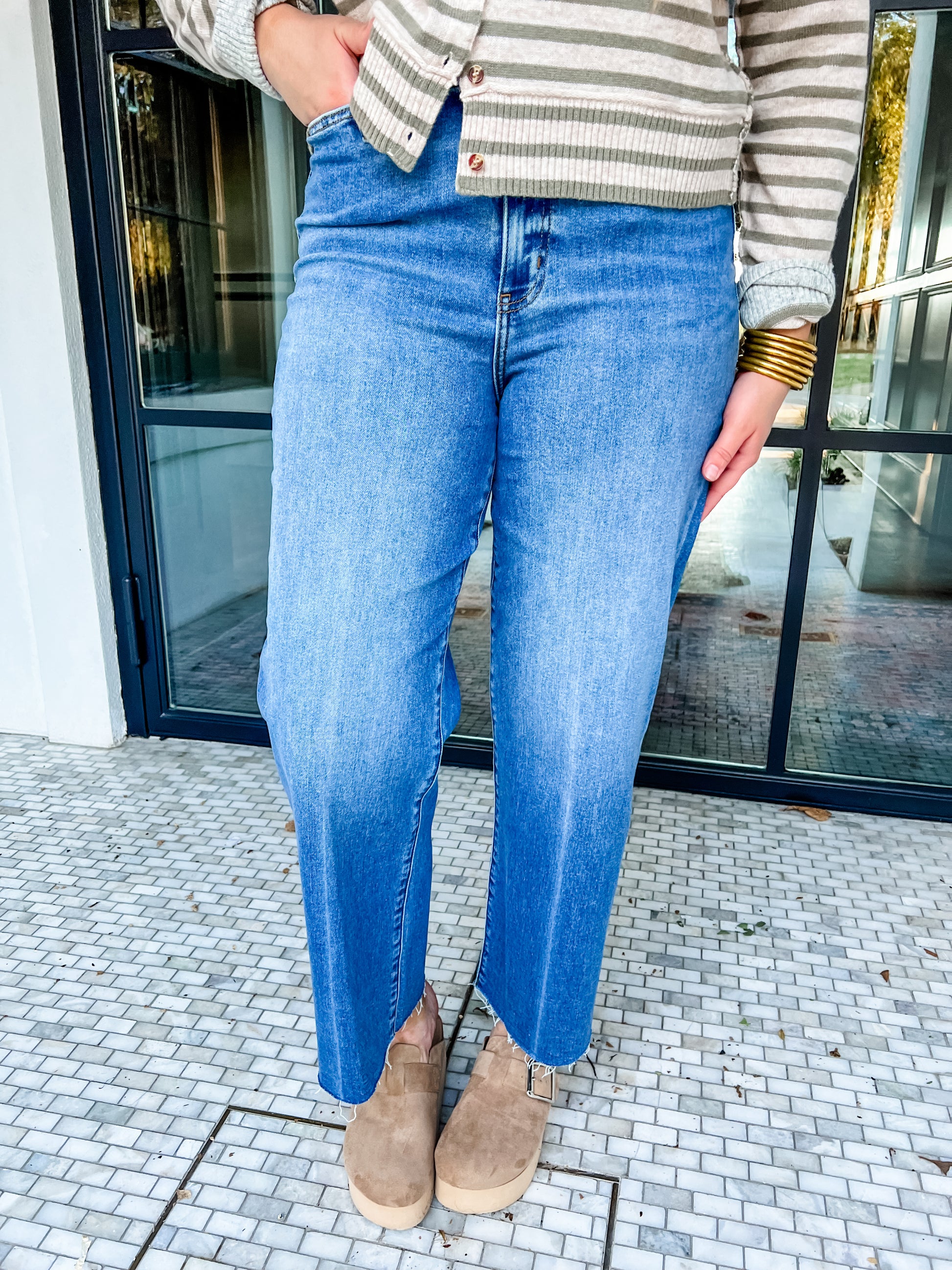 Get ready to float through your day in the Daze Pleaser Indigo Wave! These high-rise, wide-leg pants hit right at the ankle with a chic raw edge for effortless style. Crafted with stretchy fabric, they move with you for all-day comfort and a perfect fit that feels like a dream. Whether you're stepping out or lounging in