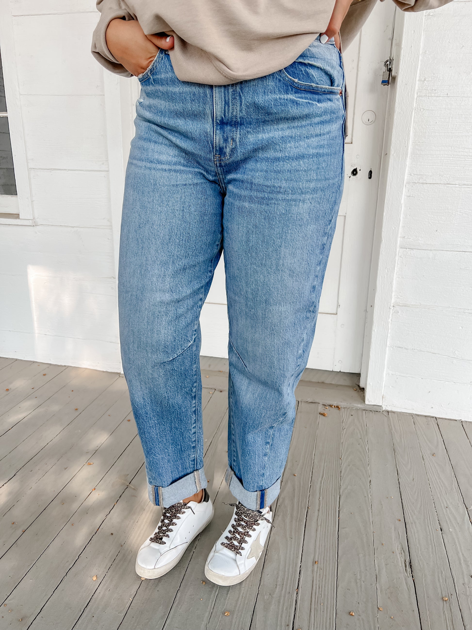 Step into style and comfort with the Daze Venice Barrel jeans! Featuring a playful barrel silhouette and trendy cuffed bottoms, these jeans add a fresh twist to your everyday look. Perfect for mixing and matching, they bring a fun vibe while keeping you effortlessly cool all day long.