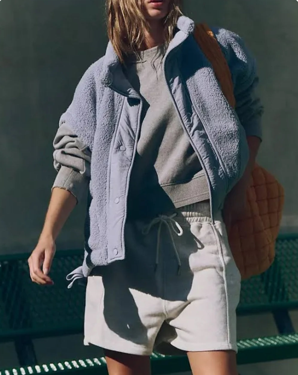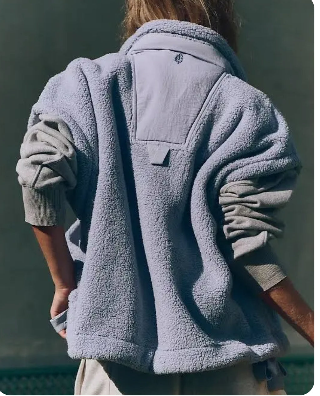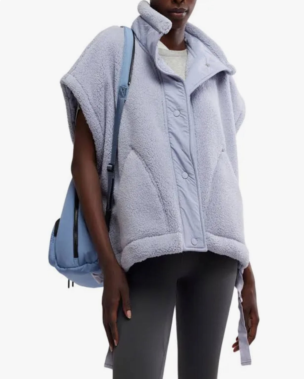 The FP Scout It Out Vest Steel features a cozy sherpa material from Free People Movement, providing warmth and style. A must-have for your winter wardrobe.
