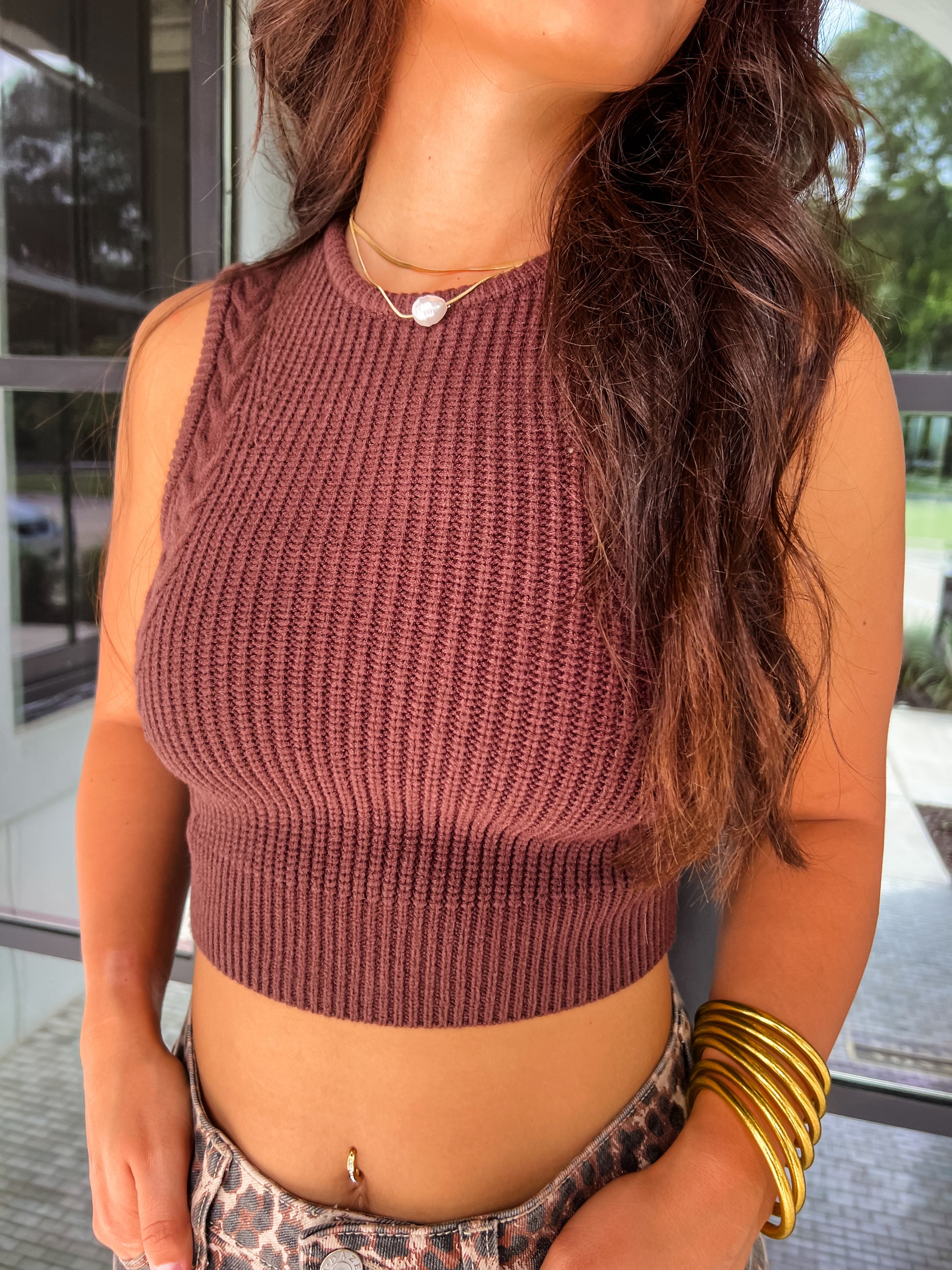 Wrap yourself in cozy charm with this chocolate brown sleeveless sweater. Its rich, warm hue is perfect for the season, adding a playful pop to any outfit while keeping you comfortably stylish. Easy to layer or wear solo, it’s your new go-to for effortless cool.