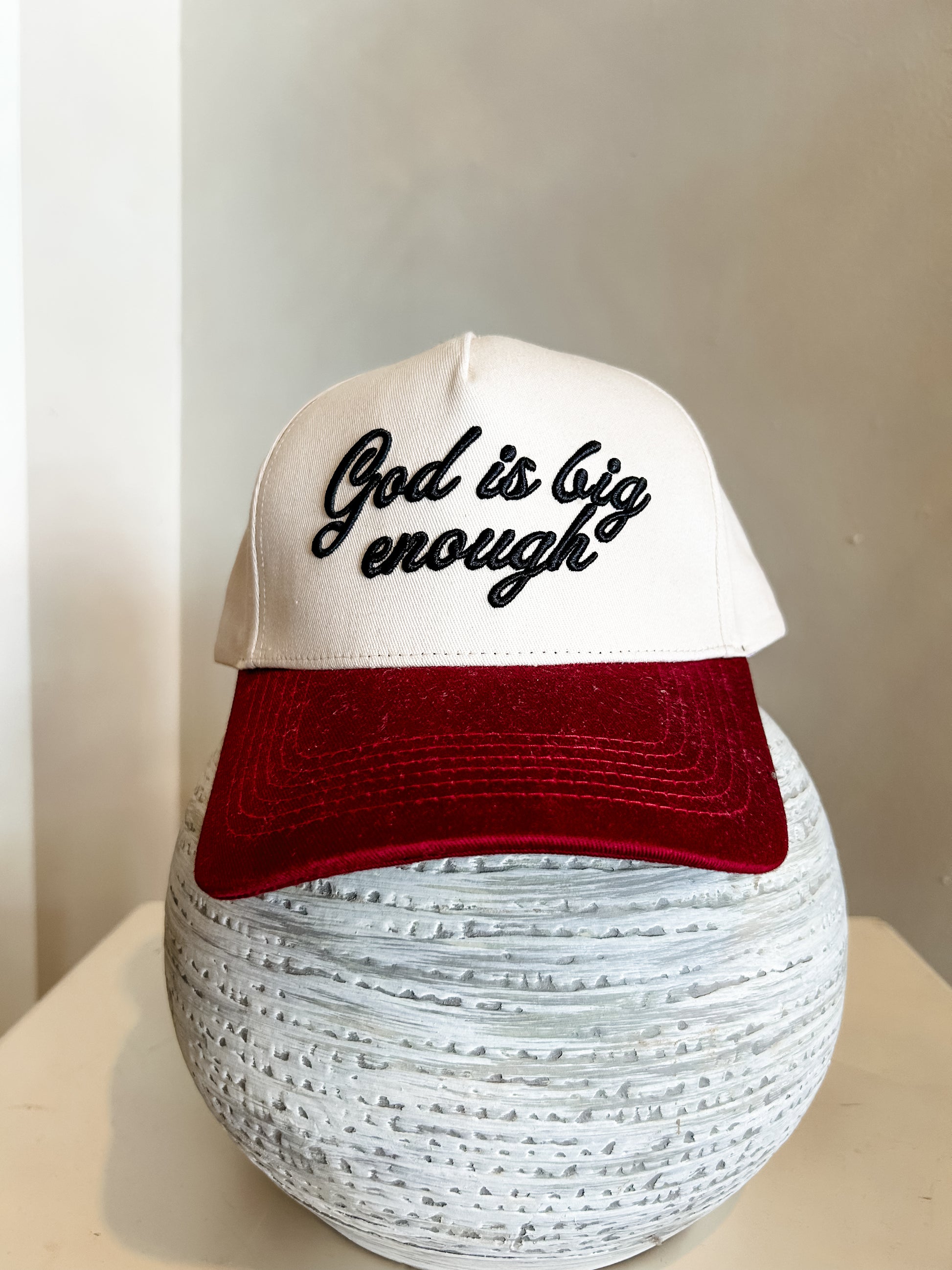 Show off your faith with a fun twist wearing the God Is Big Enough Hat. This cream and burgundy combo adds a pop of color to your outfit while reminding everyone that no challenge is too big. Perfect for sunny days or casual outings, it’s a playful way to keep your spirit shining bright.