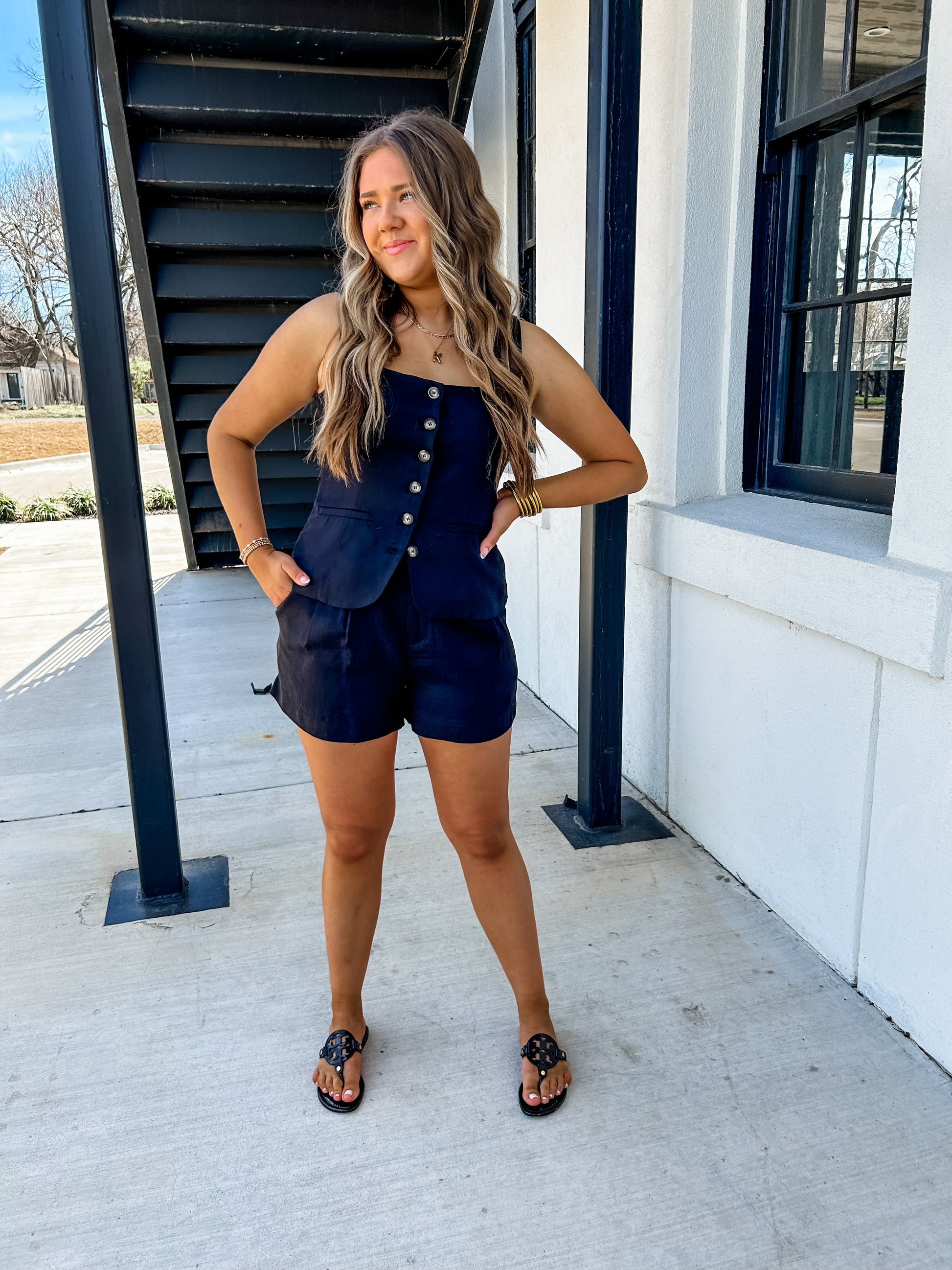Expertly crafted from soft Tencel fabric, these black shorts provide superior comfort. Complete your look with the matching vest for a coordinated and stylish outfit.