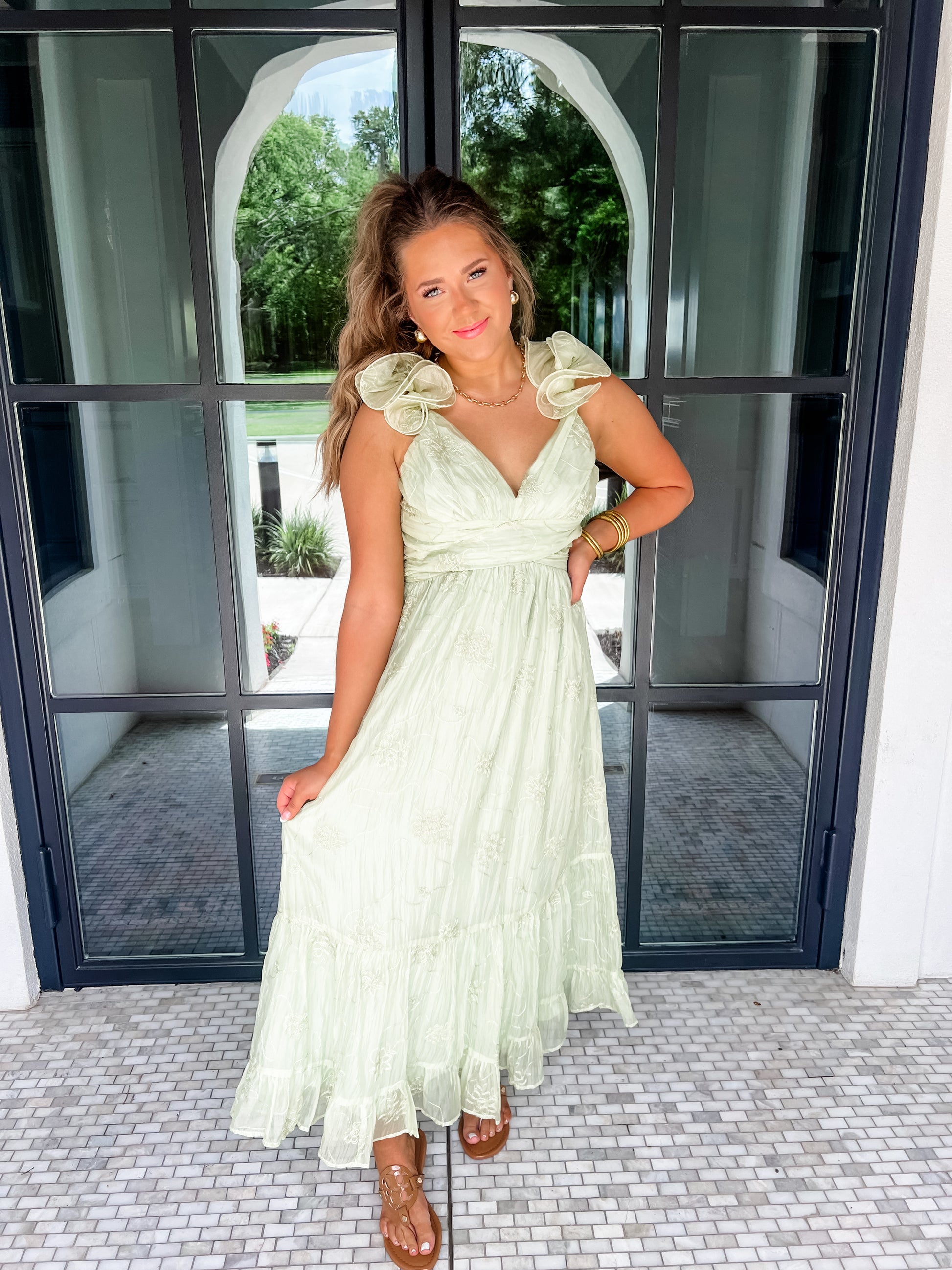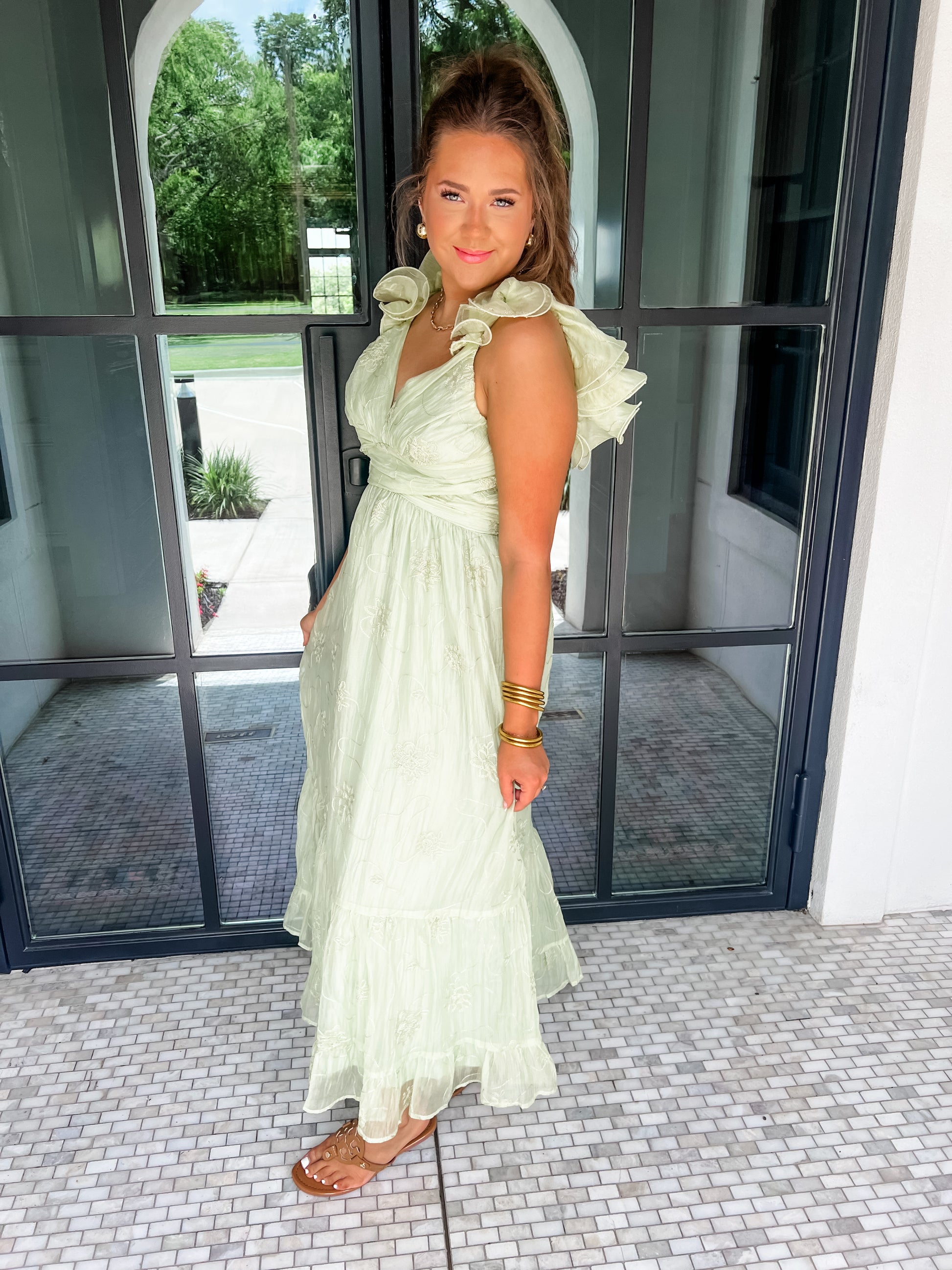 Elevate your semi-formal wardrobe with our stunning Love and Lime Dress. The eye-catching lime color creates an unforgettable statement, while delicate floral stitching and subtle shimmer add sophisticated dimension. The flattering sweetheart neckline, romantic flutter sleeves, and lace-up corset back work together to create a silhouette that commands attention at any special occasion.