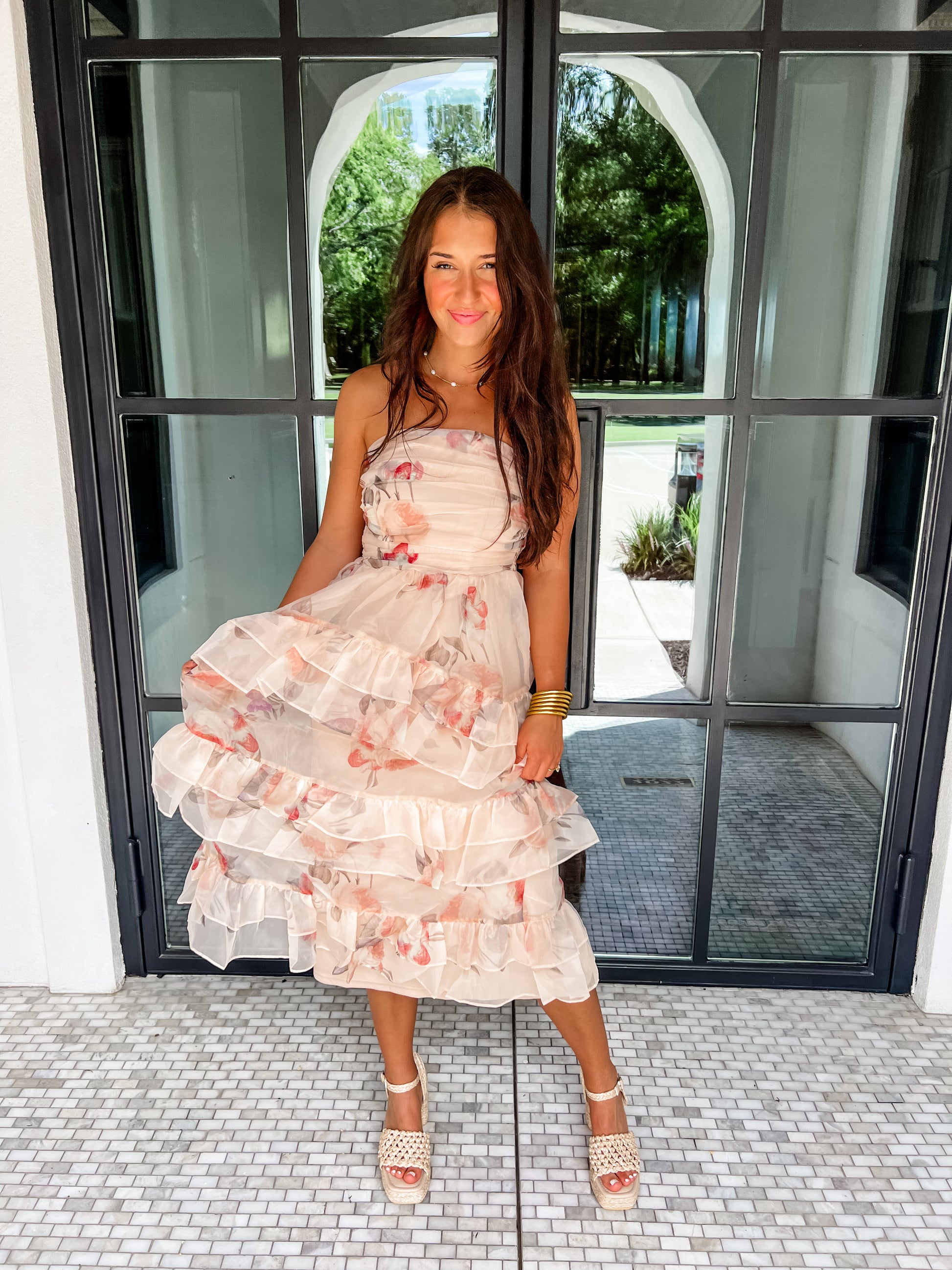 Step into sunshine with the Lulus Marigold Floral Dress! This strapless beauty features a playful tiered ruffle design crafted from light, flowy chiffon that dances with every step. Perfect for twirling through warm days or making a statement at your next garden party, its vibrant floral pattern adds a burst of cheerful charm to your wardrobe.