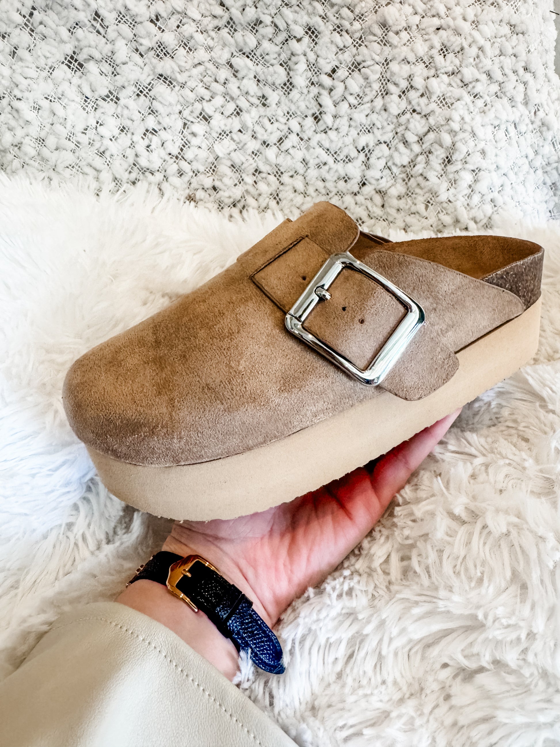 Elevate your style with the Madden Girl Cutie Pie Platform. These taupe-colored slide-on shoes feature a buckle for a secure fit and a versatile design that pairs perfectly with any outfit. Step up your fashion game with this must-have platform shoe.