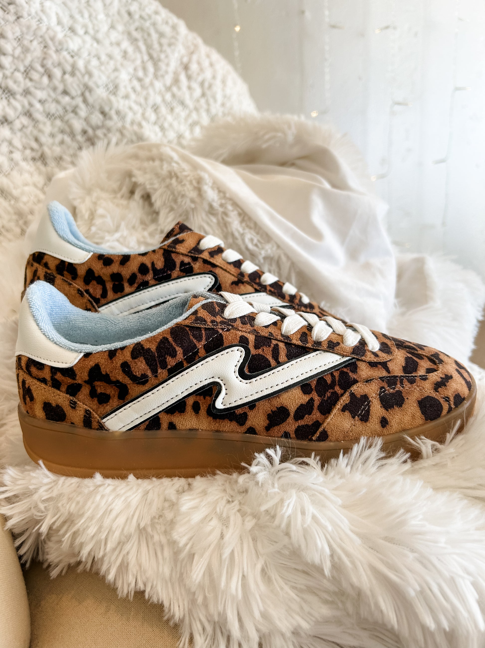 Unleash your wild side with the Madden Girl Leopard Giia Sneaker! This stylish sneaker features a fierce leopard print, accented by a white wave detail. The light blue lining adds a playful pop of color. Perfect for standing out in any crowd.