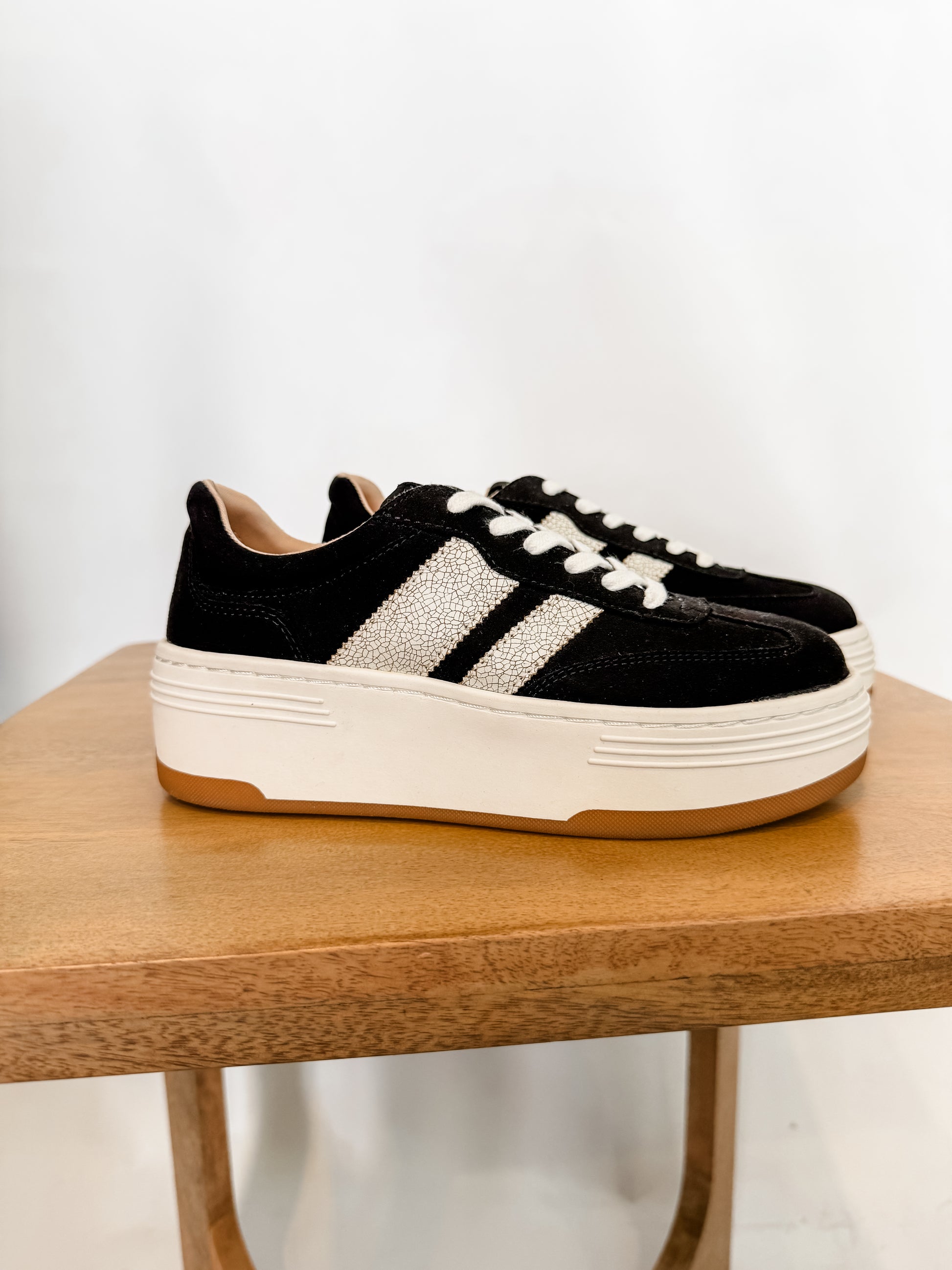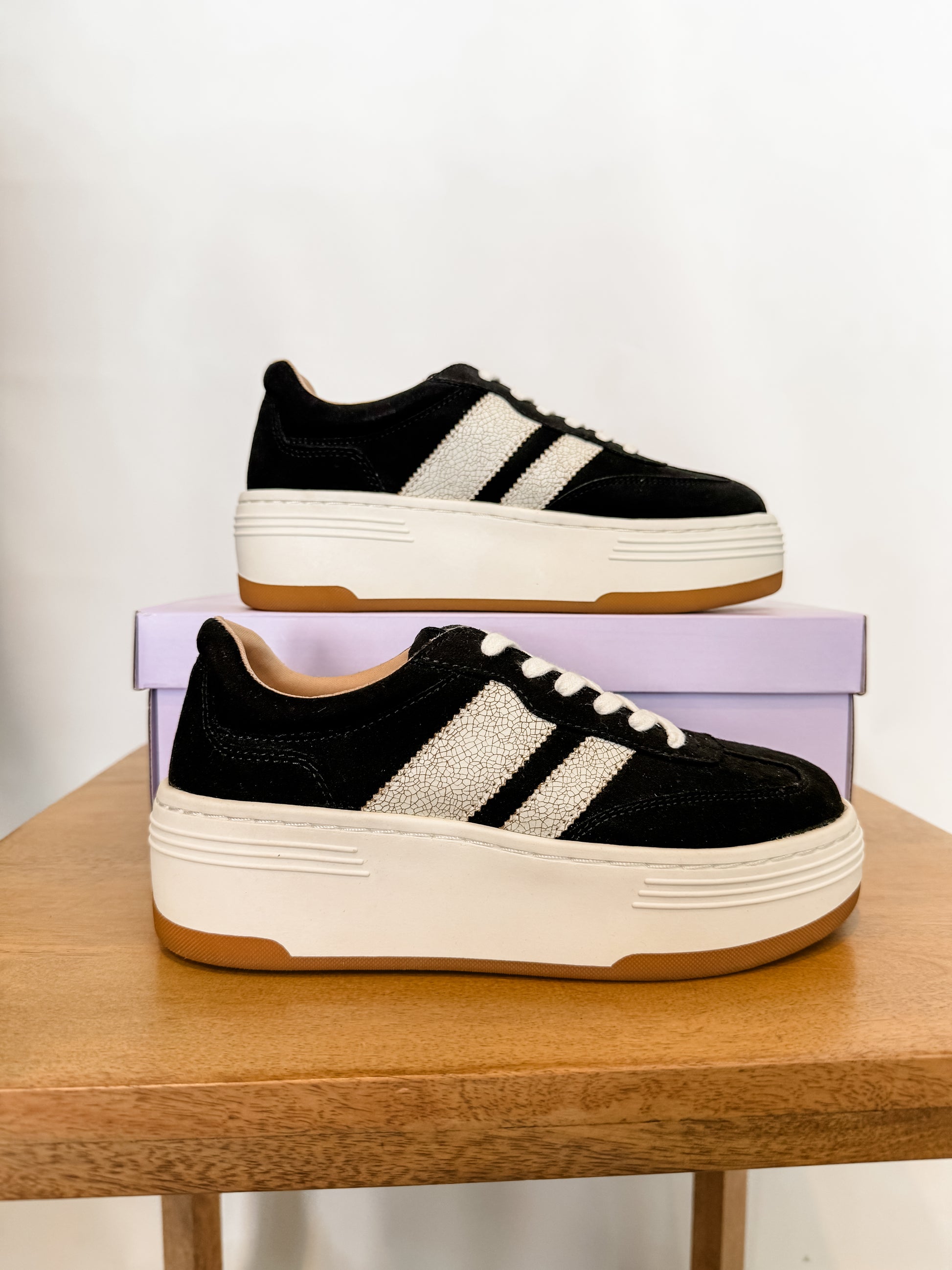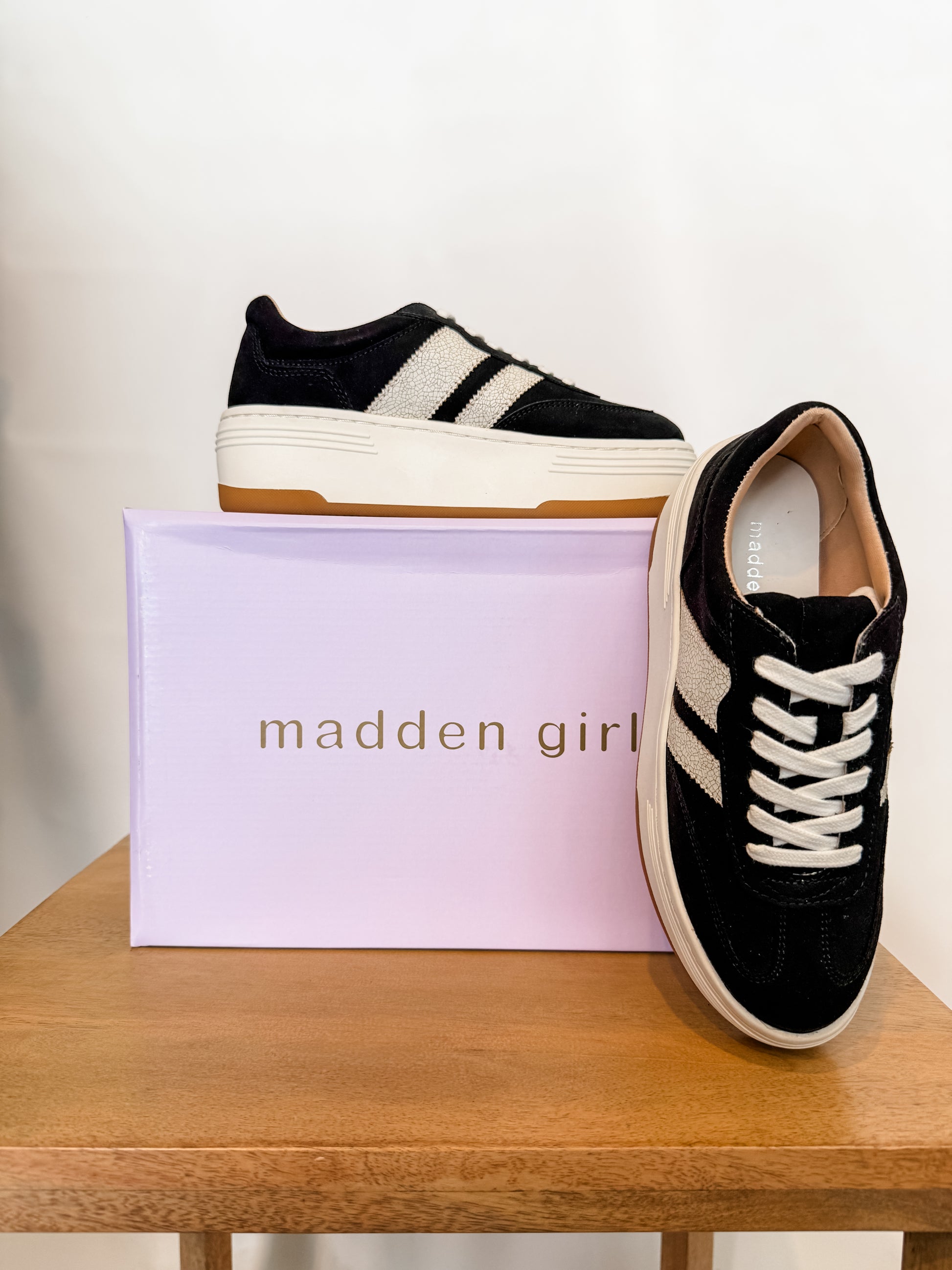 Step out in style every day with the Madden Girl Livvyy Black sneakers. Featuring a sleek black design accented by a creamy stripe and a trendy platform sole, these kicks add a fun, bold touch to any outfit. Comfortable enough for daily wear, they’re your new go-to for effortless, playful vibes wherever you roam.