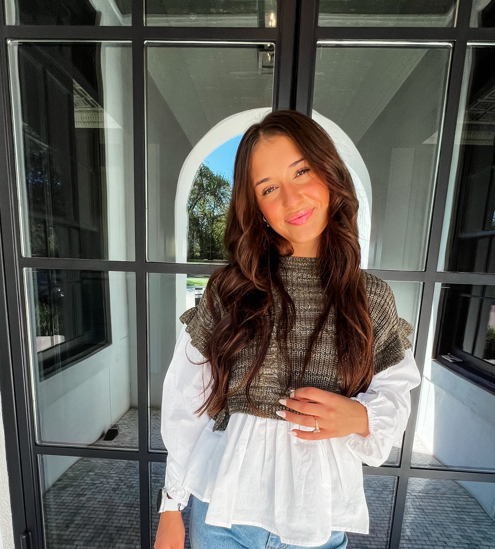 Stay cozy and cute in the Olive Meadow Combo Top, featuring a charming olive sweater layered over crisp white long sleeves. This playful blend adds a fresh twist to your everyday look, perfect for breezy days when you want warmth without the bulk. Effortless style meets comfy vibes in one easy piece!