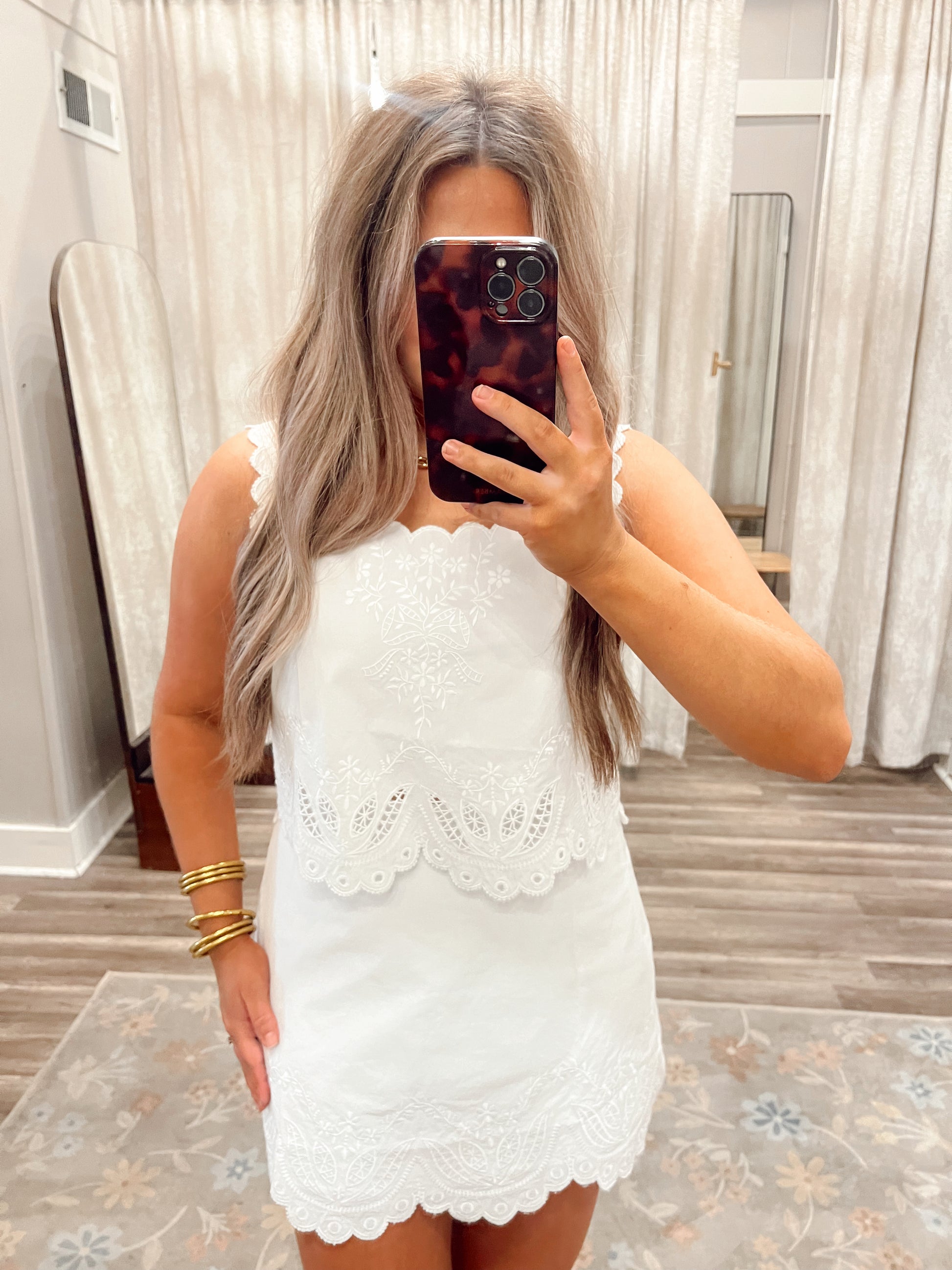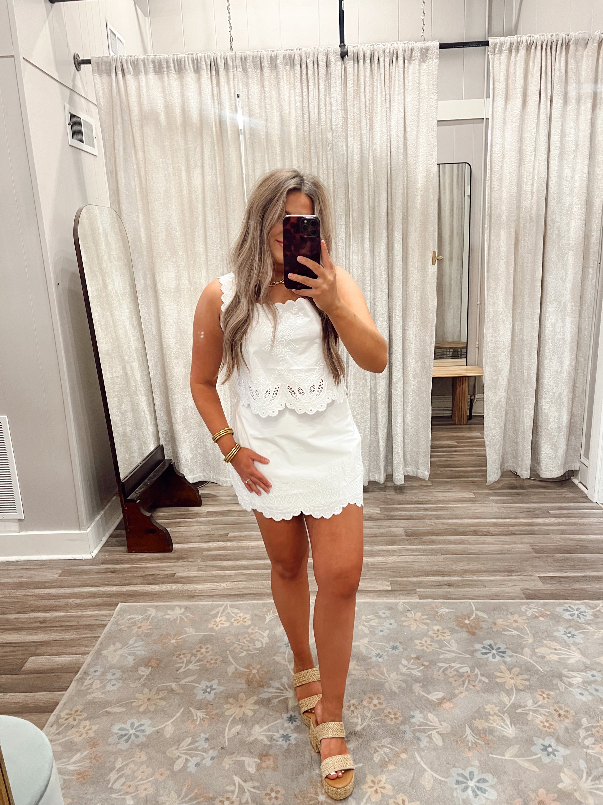 Elevate your warm-weather wardrobe with this charming two-piece set featuring delicate embroidered details. The sleeveless crop top pairs perfectly with a matching mini skirt, creating an effortlessly chic look that's ready for any occasion. The playful embroidery adds personality and texture, while the cropped silhouette keeps things modern and fun. Mix and match with your favorite accessories for endless styling possibilities. Perfect for festivals, casual outings, or making a statement wherever you go.