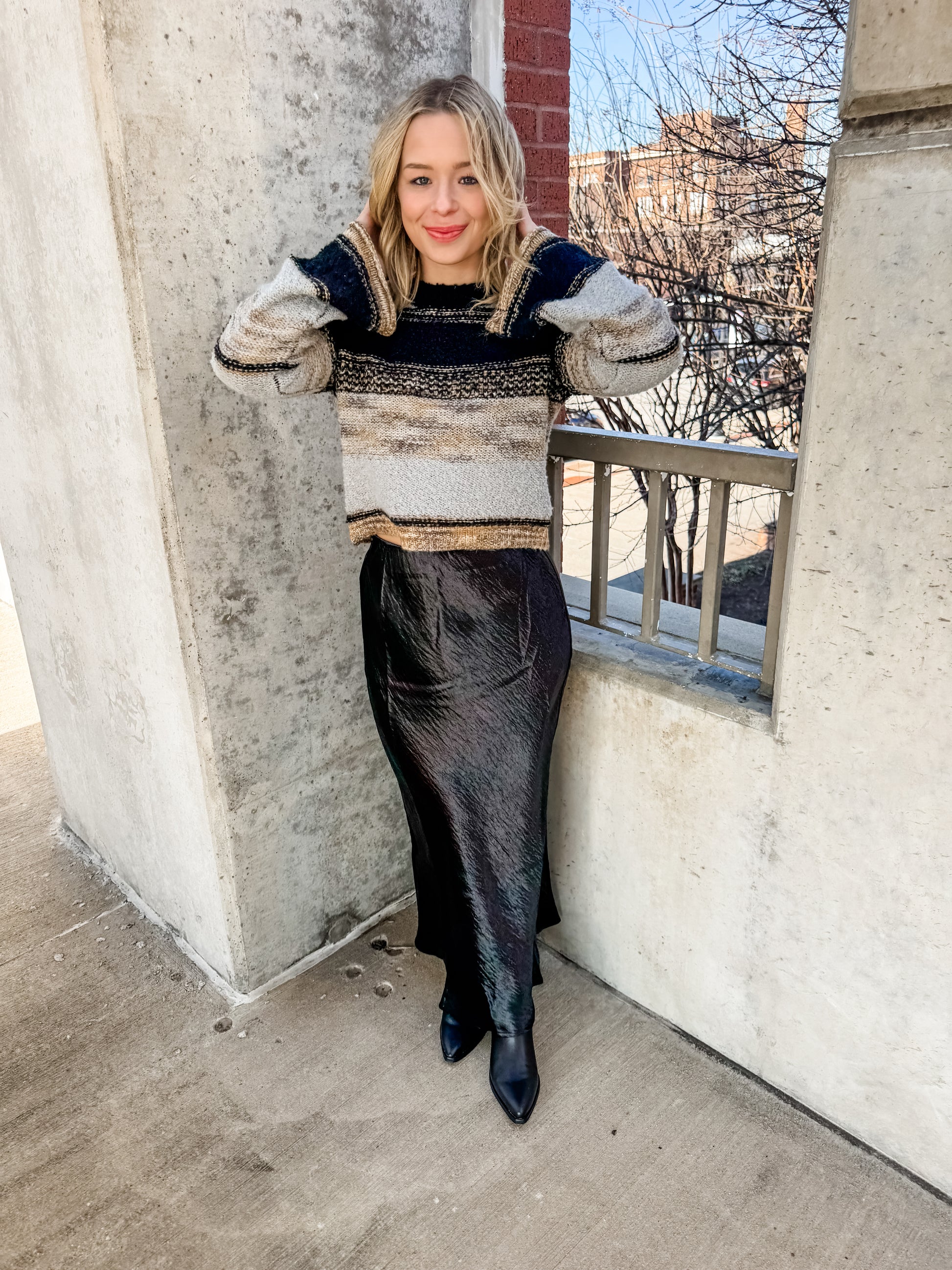 Introducing our Moonshine Black Skirt, crafted from luxurious black satin for a touch of elegance. The fabric boasts a subtle texture and sheen, adding a hint of sophistication to your wardrobe. Perfect for special occasions or dressing up any outfit, this skirt will be a gorgeous addition to your collection.