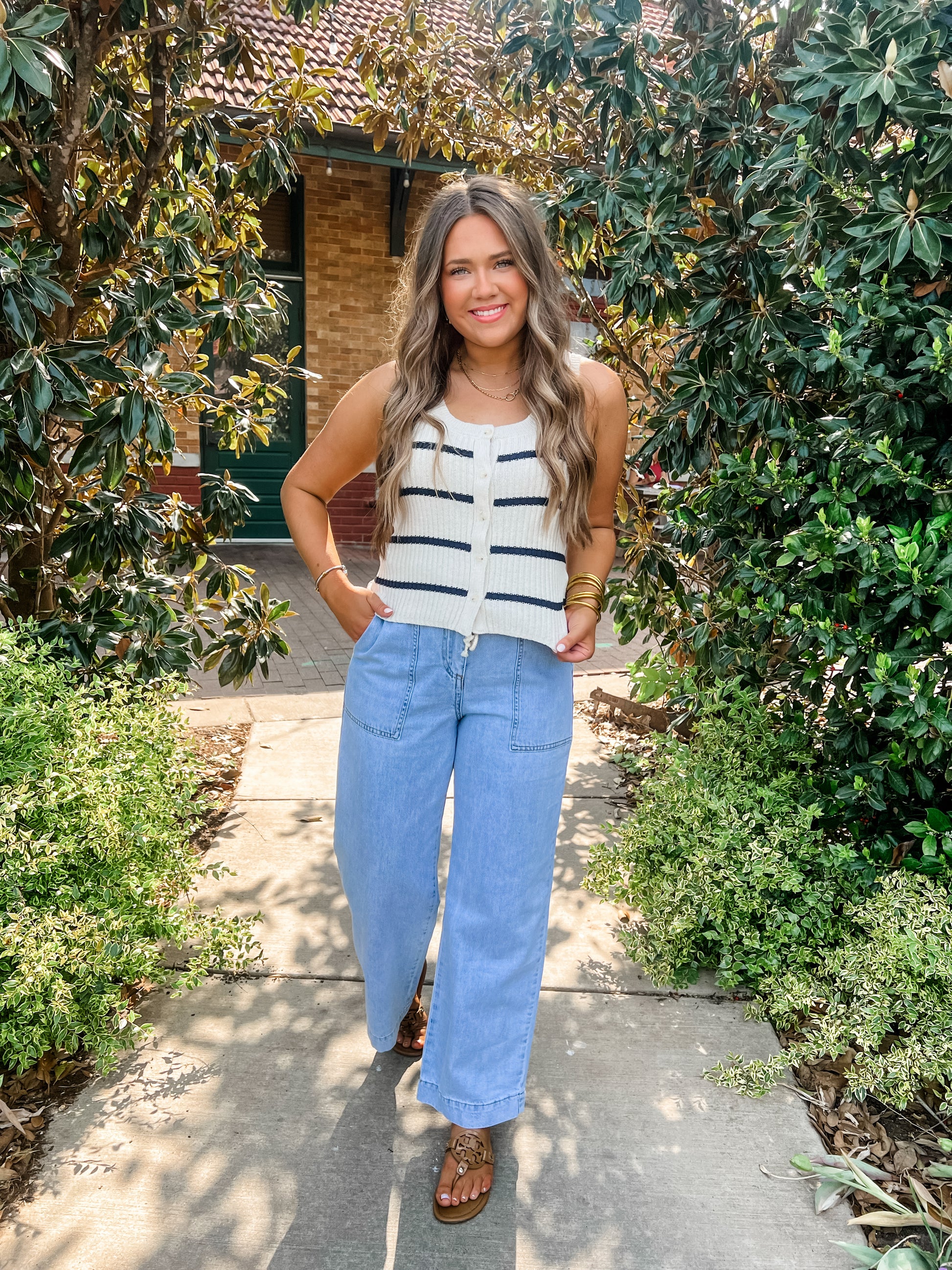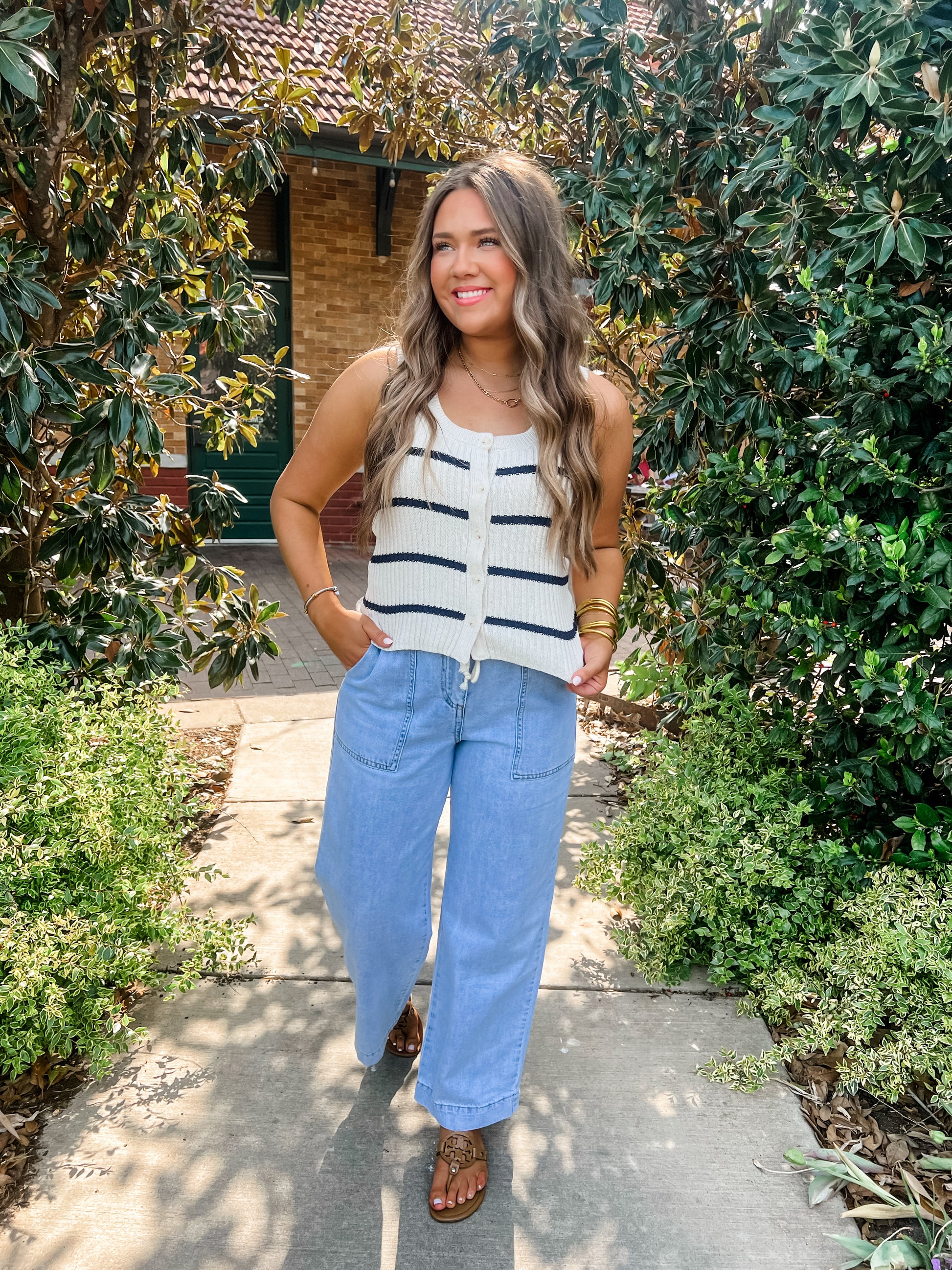 Upgrade your wardrobe with the Sycamore Stripe Sweater Vest. This sleeveless sweater features a round scoop neck and button detail for a chic and modern look. Made from high quality material, it's soft to the touch and comfortable to wear. Perfect for any occasion, this vest from Z Supply is a must-have addition to your closet!