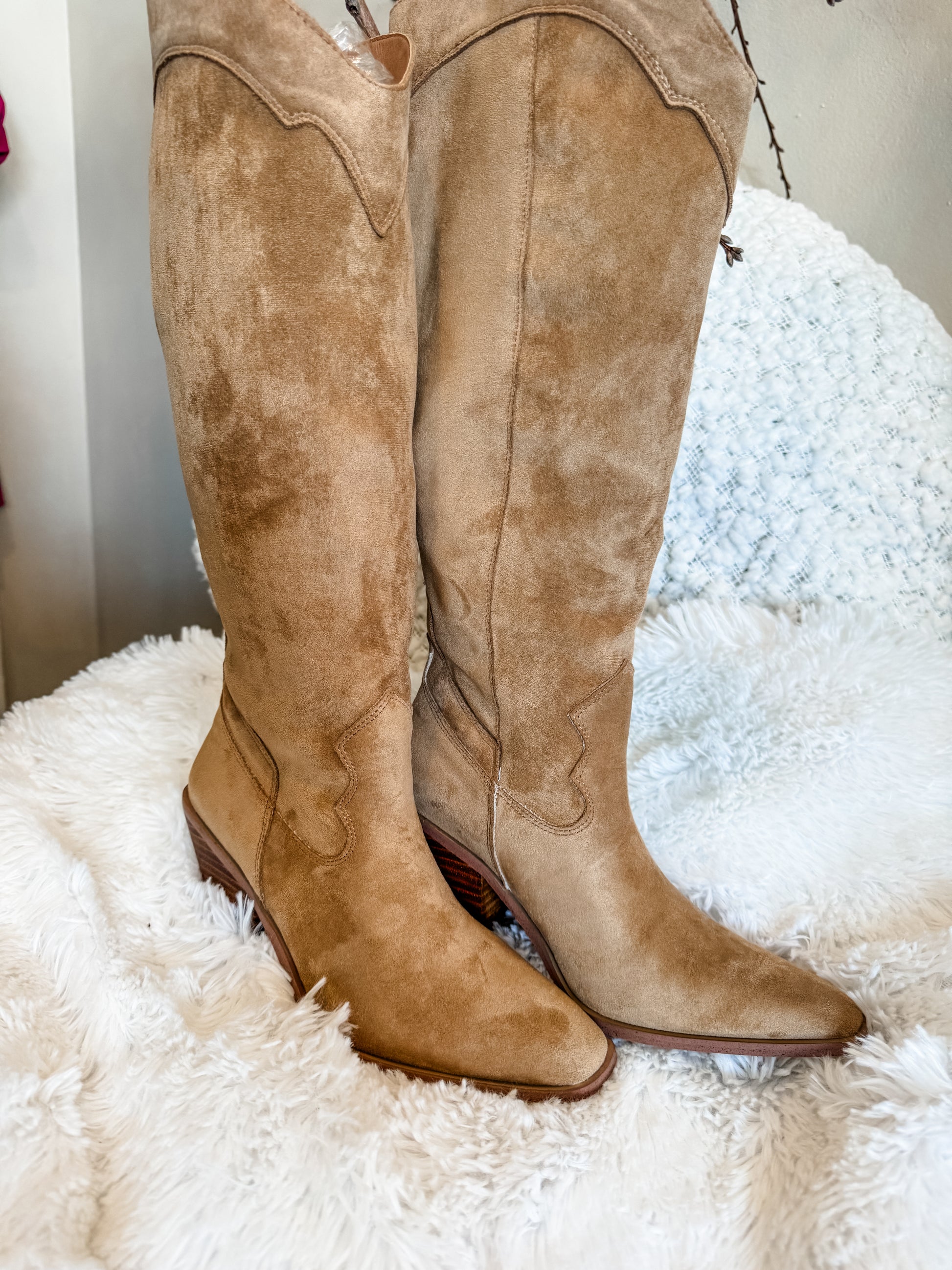 Step into style with The Classy Boot! This knee-high boot boasts a pointed toe and luxurious brown suede for a sophisticated touch. Perfect for any occasion, this boot will elevate your outfit and make you stand out in any crowd. (No one will be able to resist a little bit of suede!)