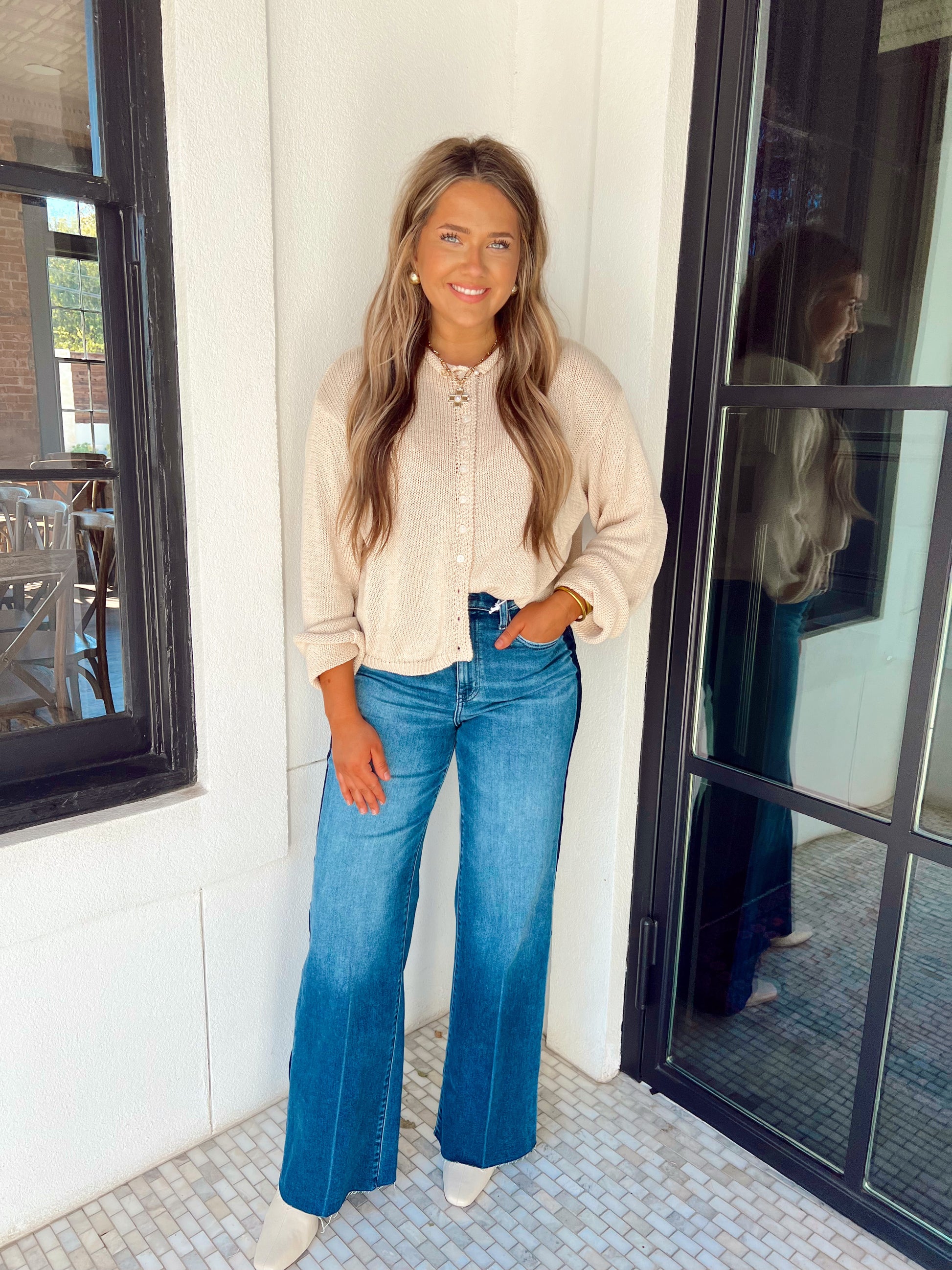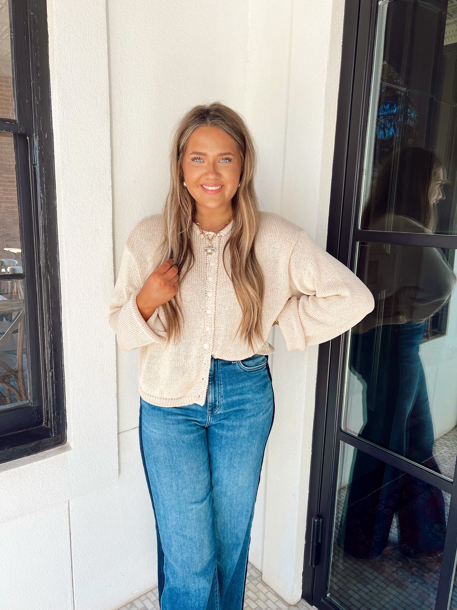 Introducing the Whip Cream Sweater—your new wardrobe MVP! This lightweight cardigan glides over everything with effortless style, featuring long sleeves and a charming front button detail that adds just the right touch of polish. Whether you're layering for spring breezes or throwing it on over a summer dress, this versatile piece works overtime across every season. Soft, comfortable, and endlessly pairable, it's the cardigan that does it all.