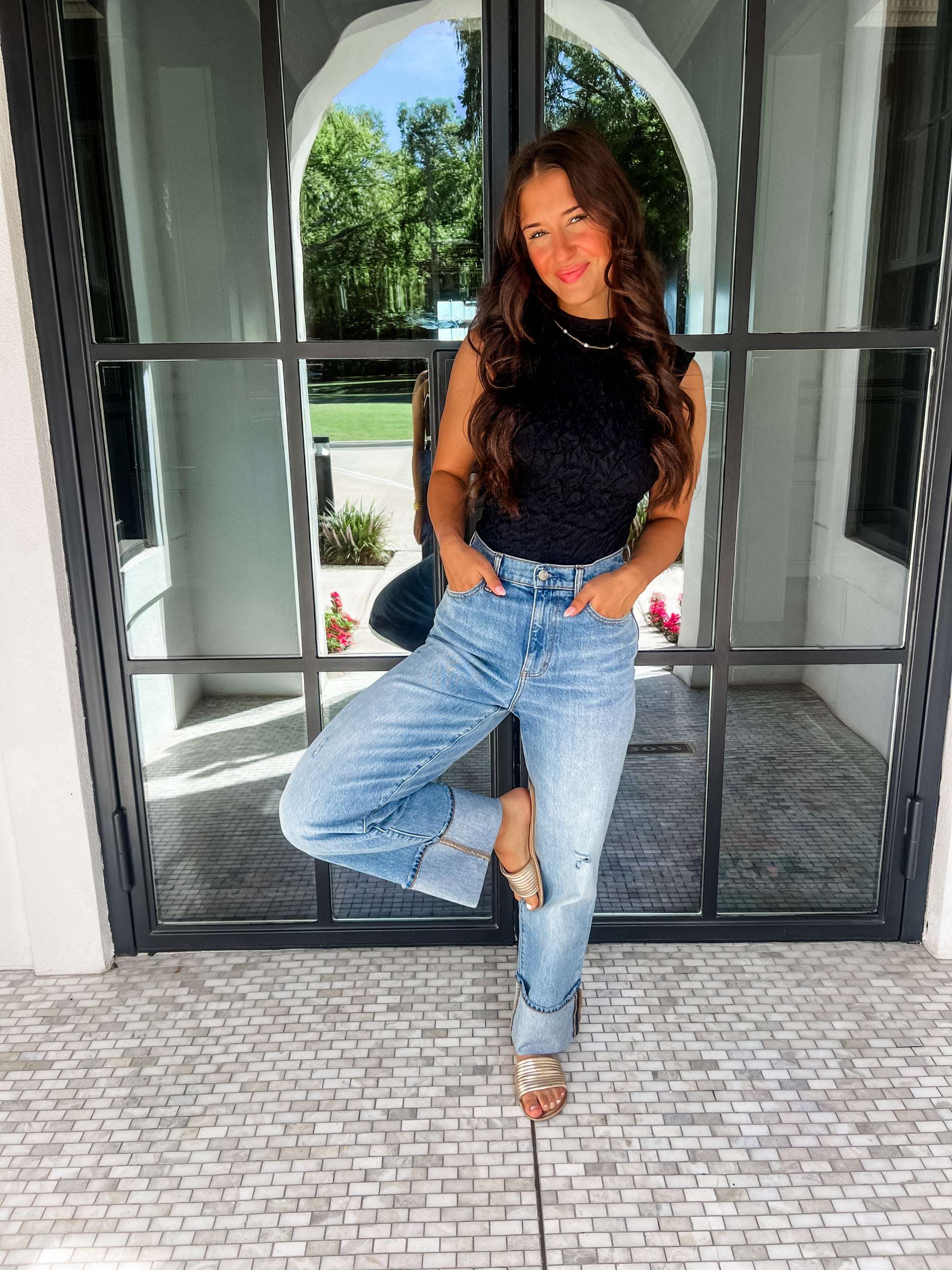 Elevate your everyday look with the Wrinkle In Time Top in black. This sleeveless, textured mock neck design adds a touch of classic charm with a playful twist. Perfect for layering or wearing solo, it’s your go-to piece for effortless style that keeps you comfortable and chic all day long.