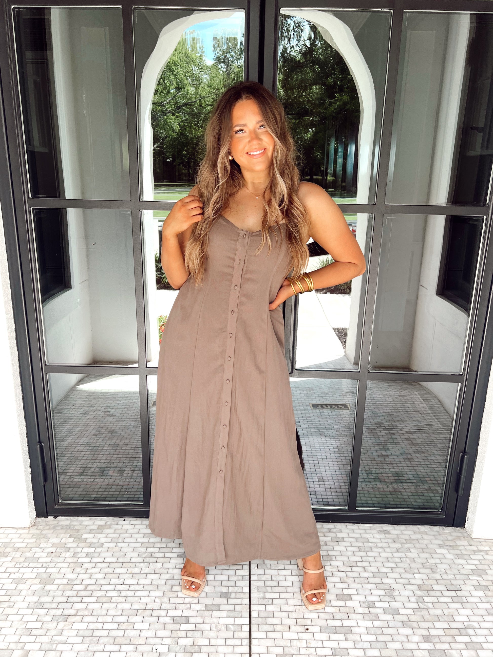 Embrace effortless charm with the Z Supply Angel Eyes Midi Dress. This soft, flowy dress in a warm brown tiki shade features delicate cami straps and a playful front button detail. Its midi length adds a touch of elegance while keeping things light and breezy—perfect for sunny days and casual outings.
