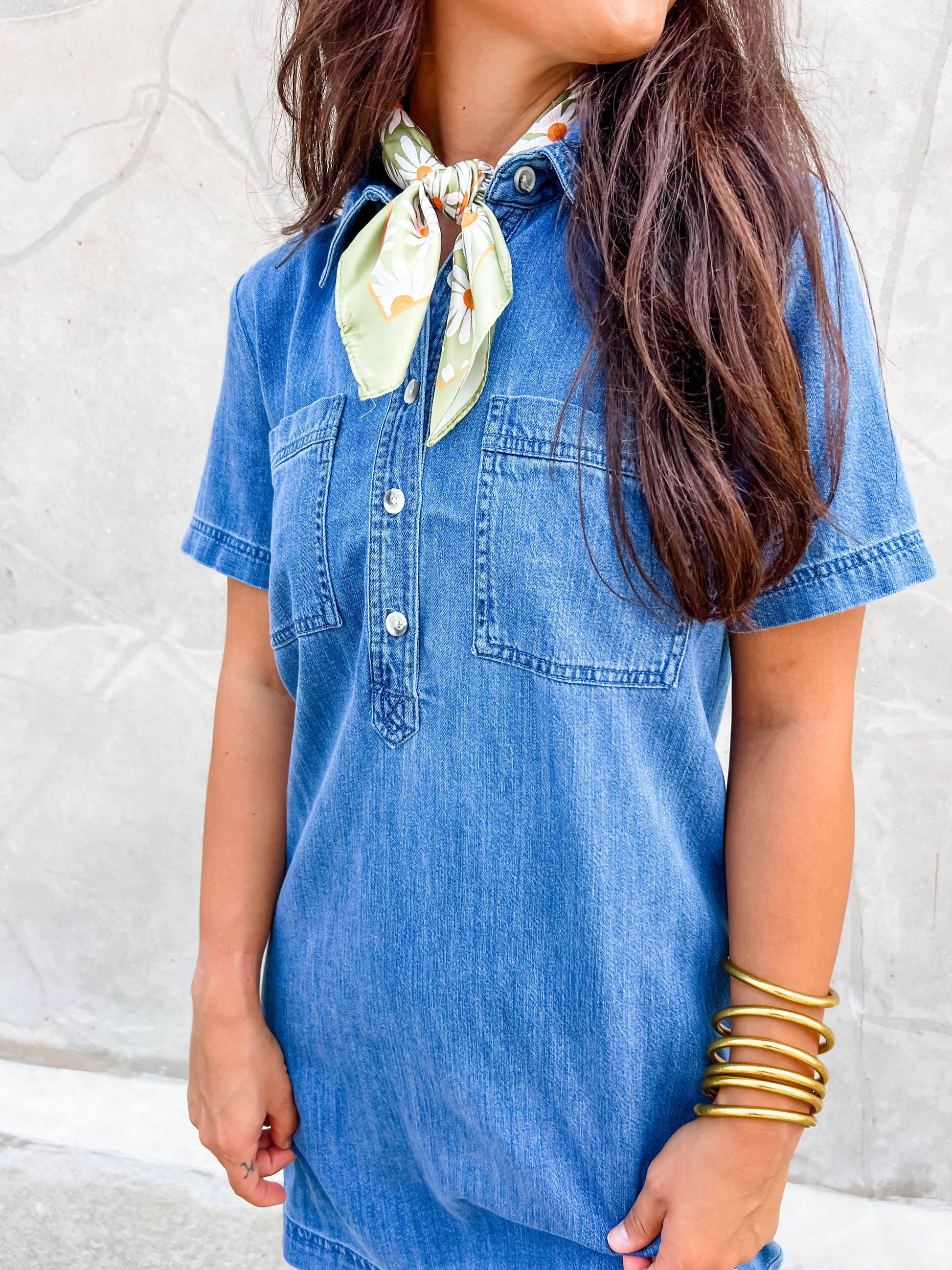 Get ready to turn heads in the Z Supply Authentic Denim Dress! This soft, medium blue mini dress features charming button details and breezy short sleeves, making it your go-to for any occasion. Whether you're out for brunch or a casual day out, its comfy fit and playful style have got you covered.