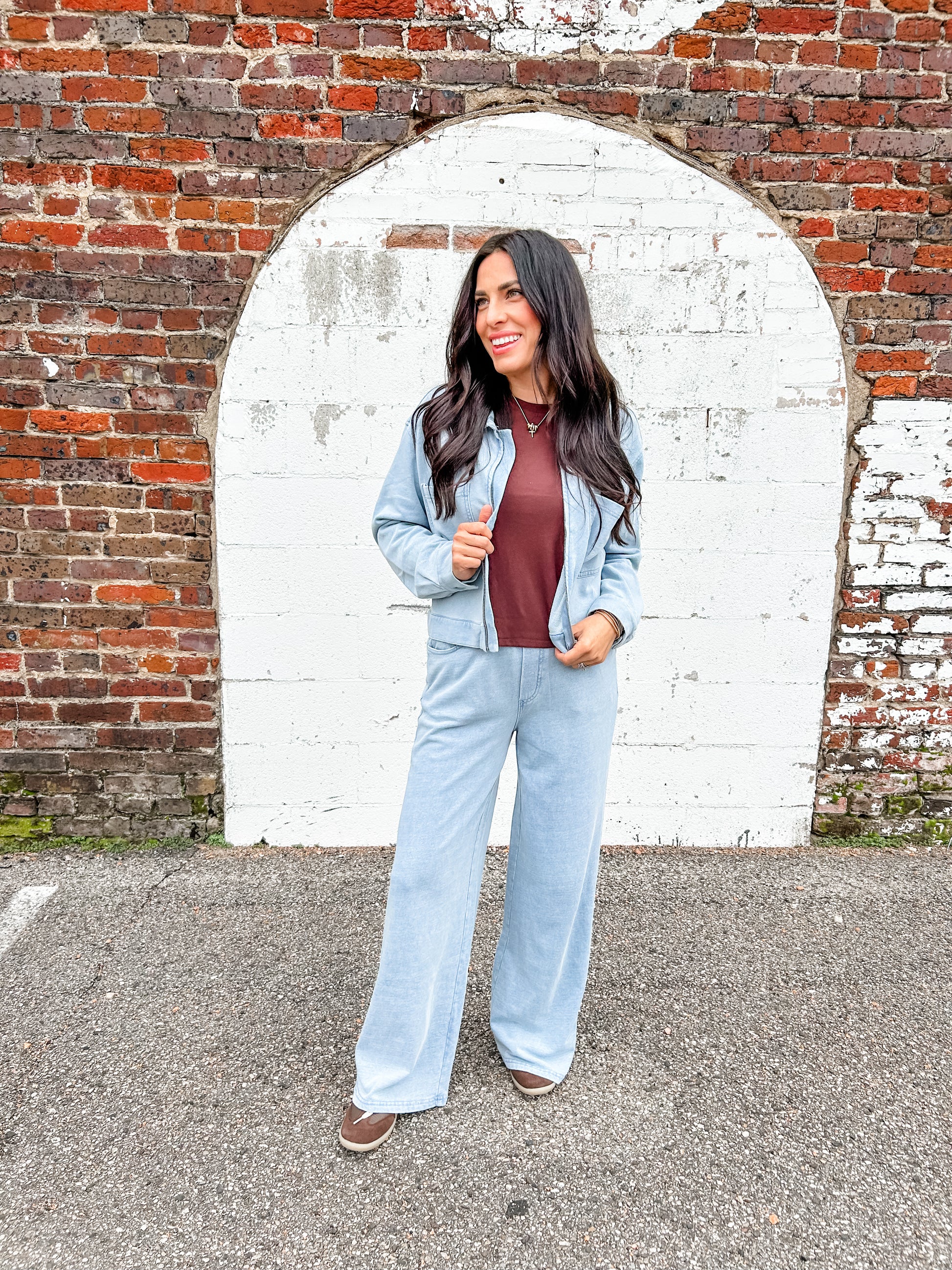 Experience the ultimate comfort-meets-style with the Z Supply Entourage Knit Denim Pant. Crafted from buttery soft knit fabric, these pants deliver the polished look of denim without sacrificing all-day wearability. The gorgeous ocean air indigo hue pairs effortlessly with everything in your closet. Z Supply's renowned quality shines through in every stitch, making these your new go-to for looking put-together while feeling like you're wearing your favorite sweats.