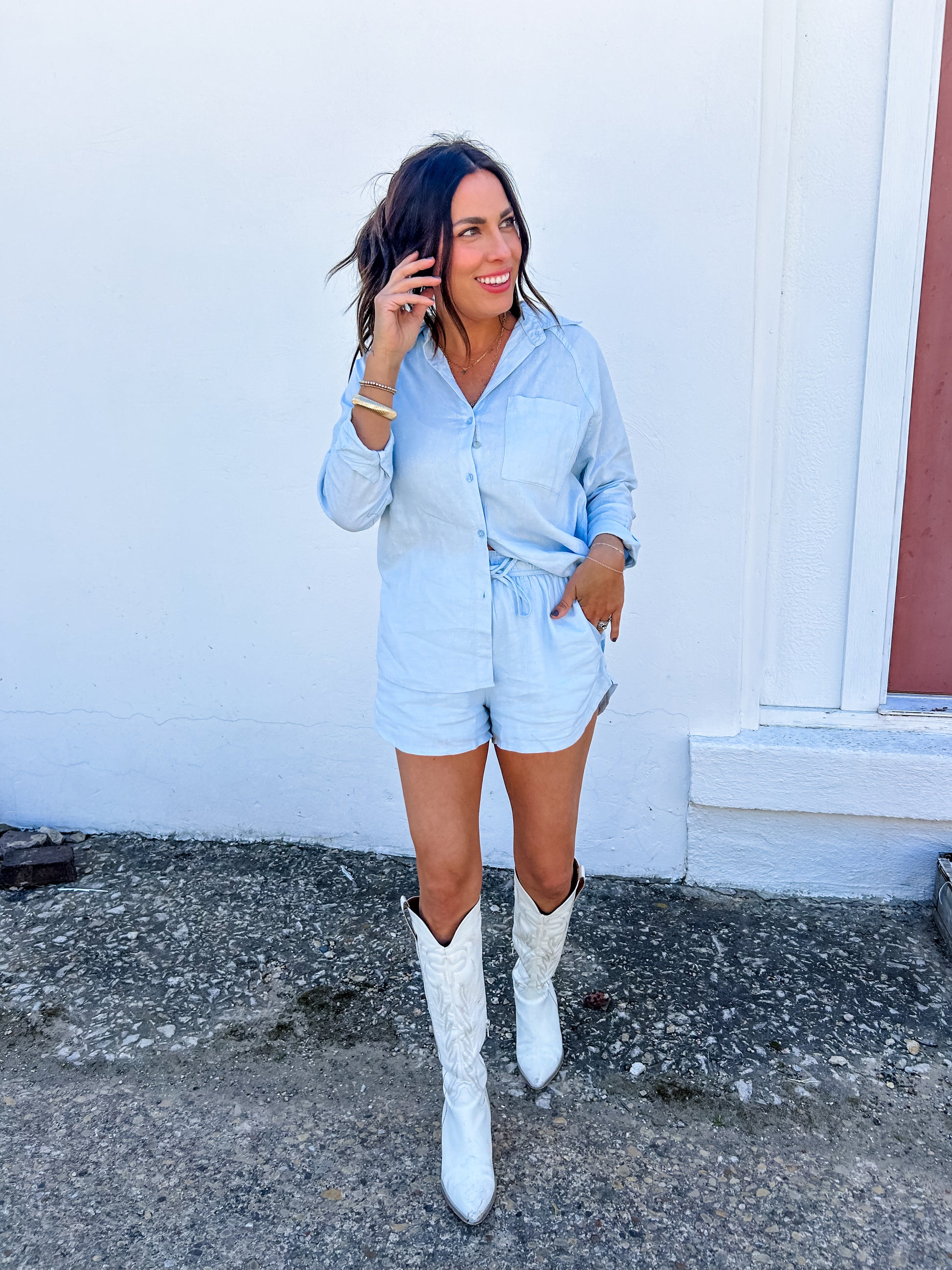 Feel the relaxed vibes and sheer comfort in our Z Supply Perfect Linen Short in Saltwater. Made from the softest linen, this beautiful blue shade will elevate your summer style. Don't miss out on the ultimate set - pair it with the matching button up top for a complete, chic look.