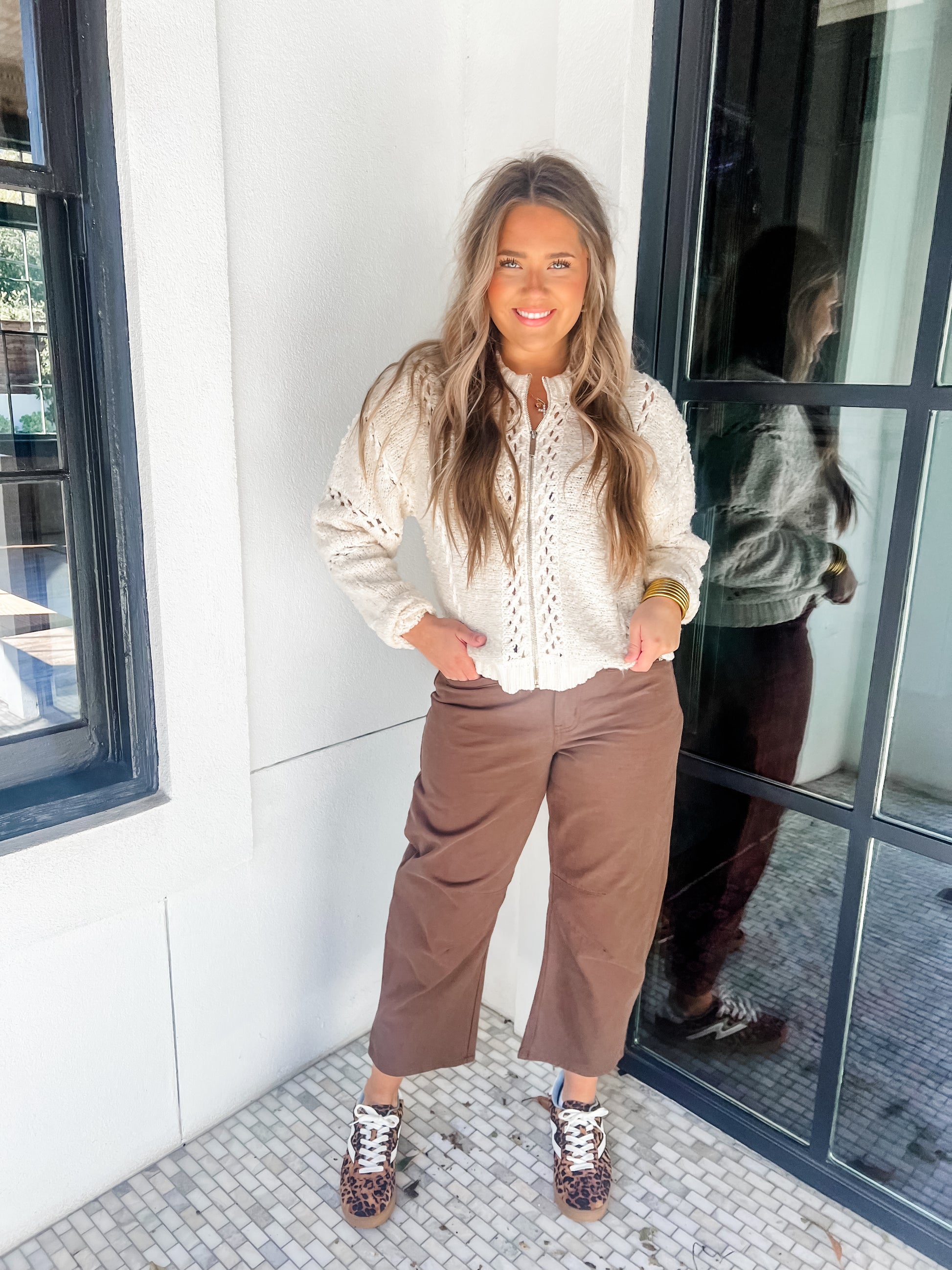 Wrap yourself in ultimate softness with the Z Supply Sundance Sweater Jacket. This cozy cream sweater features a handy zip-up detail, making it easy to layer for chilly days or chilly moods. Perfect for lounging or casual outings, it’s your new go-to for comfort with a touch of playful style.